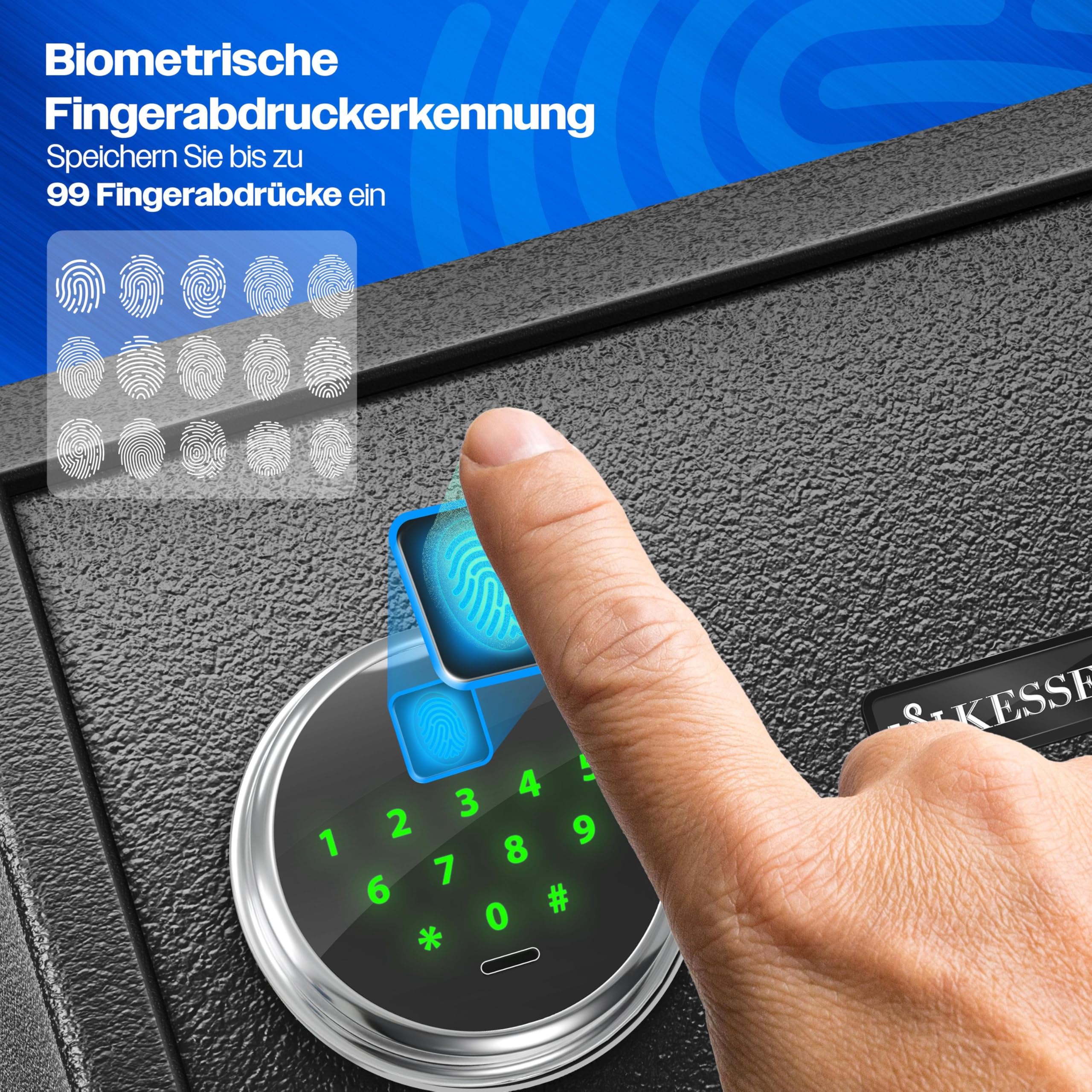 Coffre-fort électronique 12l Sweiss SWEISS Coffre-Fort Électronique SXT7260-16L, Acier Sécurisé Coffre Fort Pour Argent Sécurité Intelligente Déverrouillée Par Empreinte Digitale Scan D Pour Acces Securise Deverrouillee 91703463 Coffre-Fort Pour Pistolet, Coffre-Fort À Epreinte Digitale Cobinaison... Son ouverture par empreinte digitale (jusqu’à 30 empreintes enregistrées) ou code numérique personnalisable (4 à 8 chiffres) vous permet d’accéder rapidement à vos biens, en toute sécurité. Alimenté par un port Type-C externe et livré avec deux clés de secours, il reste accessible même en cas de batterie faible. PRATIQUE EN TOUTES CIRCONSTANCES : Le coffre peut être alimenté par un câble Type-C externe, idéal en cas de batterie faible. Protégez ce qui compte le plus avec le coffre-fort électronique SWEISS SXT7260, pensé pour allier sécurité, confort d’utilisation et capacité généreuse. UTILISATION SIMPLE ET INTUITIVE : L’écran digital avec voyants lumineux (vert pour ouverture, rouge en cas d’erreur) permet une consultation facile de l’état du coffre, même pour un usage quotidien. FORMAT COMPACT ET SOLIDE : Avec ses dimensions 37 x 29 x 27 cm, son volume de 12 L et sa porte en acier de 4 mm, ce coffre-fort discret s’intègre facilement chez vous tout en assurant une excellente résistance. GARANTIE ÉTENDUE DE 2 ANS : Bénéficiez d'une garantie étendue de 2 ans, accompagnée d'un atelier SAV en France, offrant ainsi la confiance et la tranquillité d'esprit pour une utilisation prolongée et fiable. Empreinte Digitale à L'intérieur De La Matrice De Code Scannage...