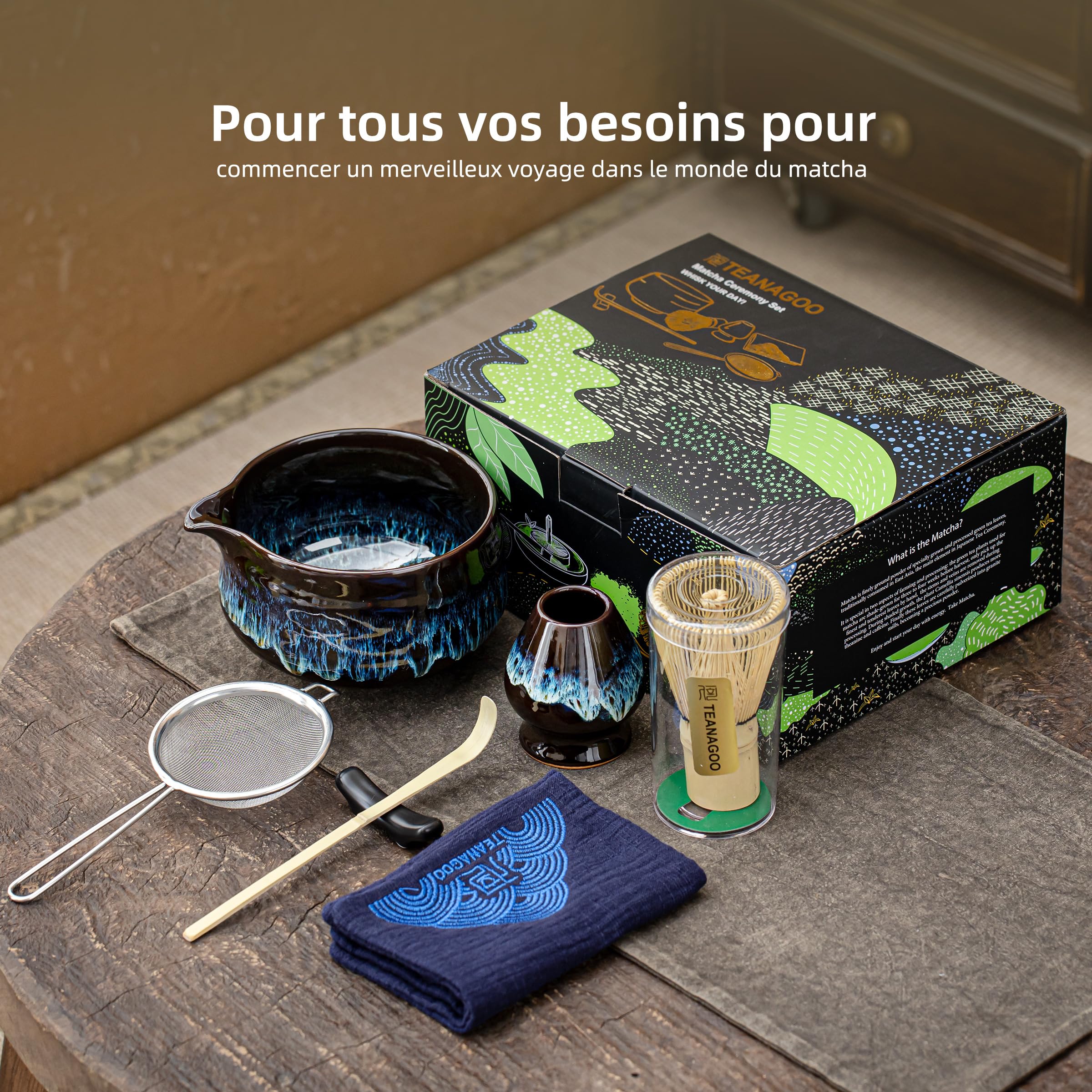 Ensemble d'outils Matcha 8 pièces avec bol dégradé Fouet en bambou Le matcha est riche en nutriments et antioxydants, aide à réduire le stress, favorise la détente et contribue à une vie saine. Coffret Cadeau Matcha Complet Matcha Kit,8 Pièces Matcha Set:Bol Matcha Avec Bec Verseur Fouet En Bambou Avec Support Chashaku Support Pour Chashaku Cuillere En Bois Chiffon Chakin Tamis A Matcha Tamis Cuillère Support Fouet Matcha 【Profiter de la tradition et de la santé】Immergez-vous dans la culture du thé japonaise. Le bol à matcha est conforme aux normes de qualité alimentaire et les fouets en bambou, dont le fouet en bambou, sont fabriqués à la main pour plus de sécurité et de fiabilité., [ARTISANAT TRADITIONNEL] - Les fouets en bambou de ce service sont d'abord traités selon des techniques anticorrosion traditionnelles, puis méticuleusement... Cuillère et Support, Accessoire Japonais pour Les Amateurs de Matcha, Vert Dégradé · 4,74,7 étoile(s) sur 5 (195) · 24,99 €24,99€ · Livraison GRATUITE lun. 12... Prêt à offrir, sans emballage supplémentaire. 【Haute qualité et facile d’entretien】Le fouet en bambou fait main permet de créer une mousse fine et crémeuse. Un cadeau raffiné et significatif pour les amateurs de thé, de culture japonaise ou vos proches. Tout ce qu’il faut pour préparer et savourer le matcha à la maison, au bureau ou en voyage. Nettoyage facile à l’eau claire – parfait pour les débutants comme pour les amateurs expérimentés. 【Kit de matcha complet】8 accessoires essentiels réunis : fouet en bambou fait main (env.