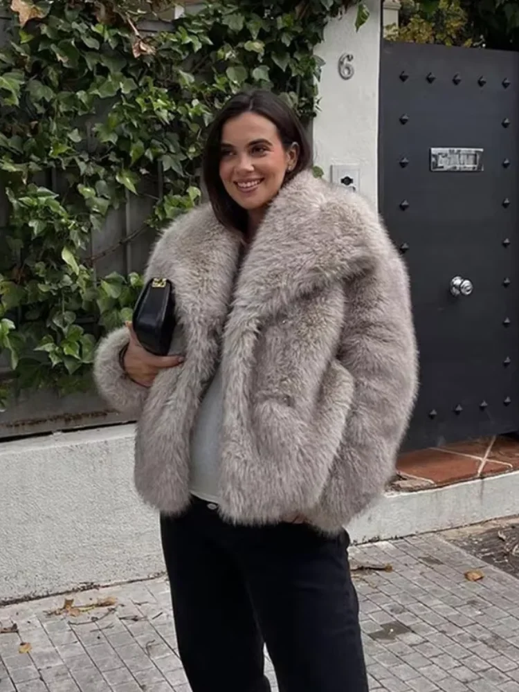 Manteau Automne Hiver Mode Veste En Fausse Fourrure à Manches Longues Pour Femmes, Manteau De Fourrure Surdimensionné, Vêtements D'extérieur Décontractés Pour Dames, Parkas D'hiver Pour Femmes, Long Vison, 2024 Décontracté Sortie Soirée manteau cuir fourrure homme en gro pour vou protéger de élément... Manteau en fausse fourrure à manches longues pour femmes, veste moelleuse, col rabattu, court, chic, automne, hiver Plusieurs options : manteau en fourrure blanche, veste d'hiver en fourrure rose, noir, gris, marron, beige, manteau d'hiver moelleux et lisse pour femme. Veste courte en fausse fourrure pour femmes, manteau à manches longues, bouton pression avant, col à revers chic, optique, mode féminine, 2024 ; Livraison · 18,10... Offre un confort ultime et vous aide à rester au chaud pendant les jours froids. Design tendance : ce vêtement d'hiver chaud avec deux poches, pratique, tendance et charmant manteau en fourrure. Occasions : la veste pelucheuse en fausse fourrure peut être assortie à un jean, une robe ou une jupe. Conseils d'entretien : ce manteau court en fourrure à manches longues peut utiliser un sèche-cheveux et un peigne pour le rendre plus lisse et moelleux.