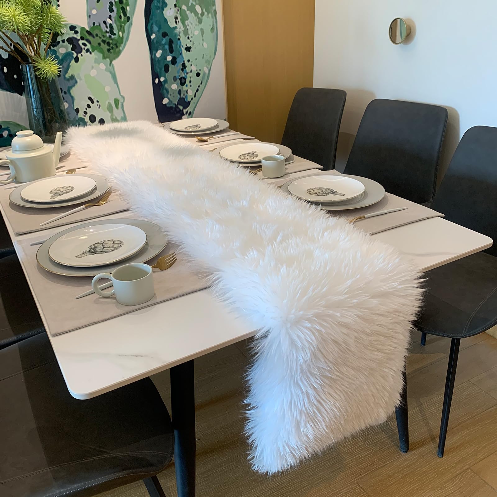 Décoration Table Blanche Hiver 30X80Cm Chemin De Table Blanc Fourrure Pour Anniversaire,Fête De Chemin De Table Lavable Mariage Ruban Fourrure Fausse Fourrure Jaune Pour Artisanat Chemin De Table 15150cm Chemin de table, fausse fourrure blanc, chemin de table... Matériau : fausse fourrure., Largeur : 38 cm. Instructions de lavage : Veuillez le séparer des autres vêtements de couleur foncée. Contenu du paquet : 1 chemin de table en fausse fourrure blanc neige. Chemin de table moderne en fausse fourrure - Décoration de Noël - Blanc Caractéristiques : Nom : chemin de table en fausse fourrure blanche. Matériau de qualité supérieure : le chemin de table blanc en fourrure synthétique est fabriqué en fourrure artificielle, doux et confortable, de haute qualité et durable, et peut être utilisé pendant une longue période. Fabrication délicate : ce chemin de table de Noël blanc se déplie comme des nuages blancs sur la table à manger, simple, élégant et pur, parfait pour la décoration de Noël blanche. Il est préférable de le laver à la main ou de le nettoyer à sec séparément pour garantir une utilisation répétée à long terme. Le chemin de table est doté d'une doublure en tissu sur sa face inférieure. Cette finition soignée assure une bonne tenue sur les surfaces lisses et distingue clairement le côté décoratif en fausse fourrure du côté qui repose sur votre meuble, garantissant ainsi une mise en place facile et stable