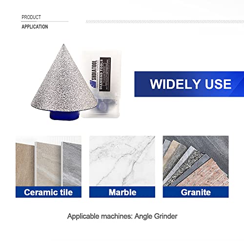 Fraise Carrelage Diamant 10Mm Avec Filetage M14 Pour Agrandir Meuler Et... 【Meulage et chanfreinage】La combinaison du meulage et du chanfreinage peut répondre à différents besoins ; le chanfreinage peut éliminer lentement les trous rugueux et améliorer l'efficacité du travail. Vitesse recommandée 6000RPM, vitesse maximale 11000RPM ; Fraise Alésage 25mm Angle 53 Fraise Diamant à Chanfrein Diamantée HIGHDRIL 50 Mm Avec Filetage M14 Pour Agrandir Et Tailler Les Trous Existants En Porcelaine, Céramique, Marbre, Granit Fraise à Chanfrein Diamant 【Spécification】Tige : Filet M14, Angle de chanfrein : 53°, Diamètre : 25mm(1), Grain de diamant : partie chanfrein#80/ partie meulage#60, longueur totale:65mm, profondeur de travail : 55mm(partie chanfrein : 25mm ; partie meulage : 30mm). Brasé sous vide : en utilisant de l'acier de haute qualité, combiné à une technologie avancée de brasage sous vide, le foret est tranchant et durable, avec une longue durée de vie HIGHDRIL Chanfreinage diamanté Fraise - Fraise à chanfrein en diamant avec filetage M14 pour agrandir les trous de 25 mm dans les carreaux de céramique en porcelaine, le granit, le marbre et le quartz. HIGHDRIL Fraises Diamantées 20mm Pour Agrandir Meuler Et Fa Onner Les Trous Existants Dans Carrelage Porcelaine C Ramique Marbre Granit Ma Onnerie Co