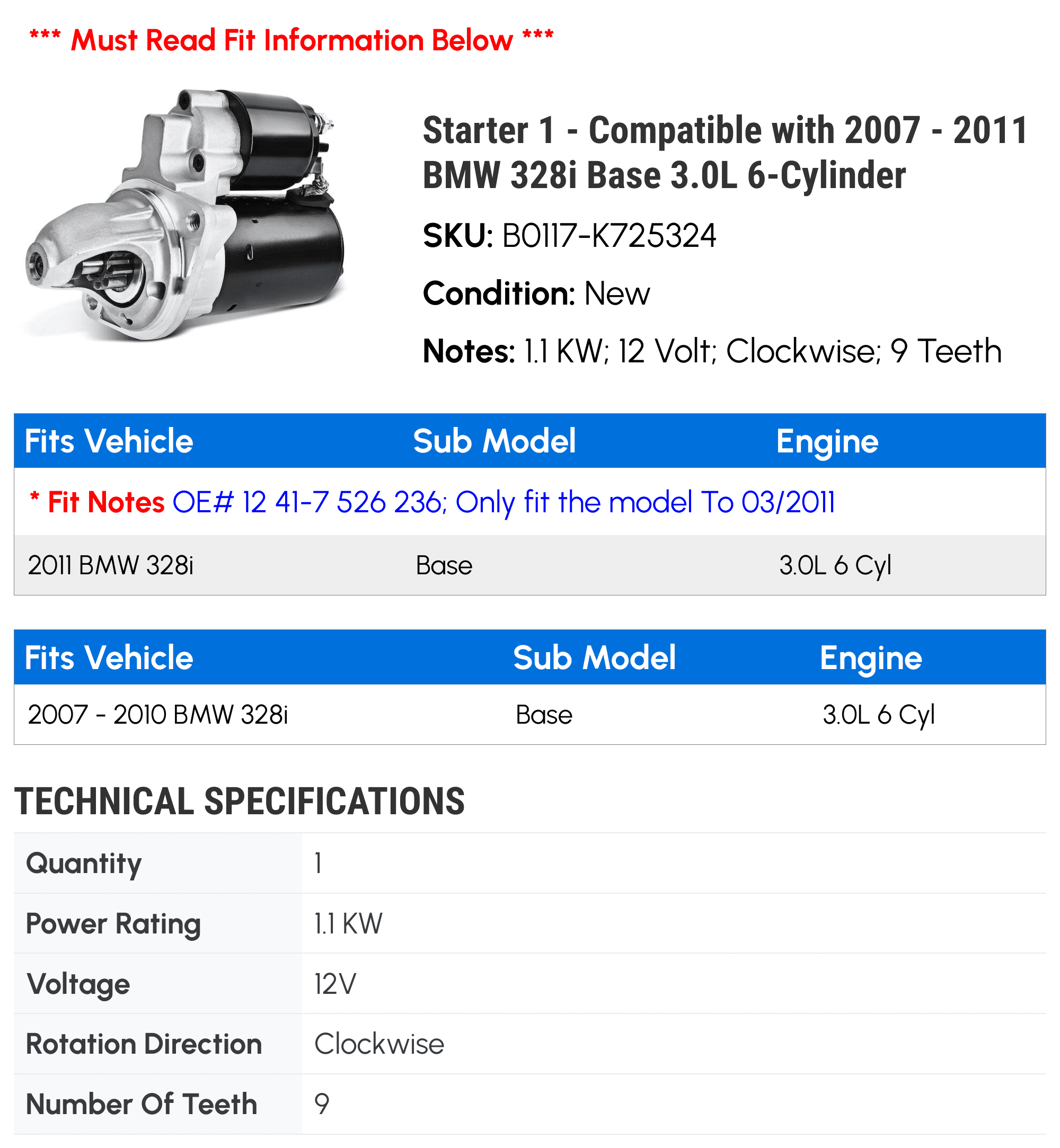 Frankberg 1x Démarreur pour BMW 1er E87 3er Cabriolet Démarreur Compatible E60 Frankberg Démarreur De Moteur Diesel 1,7 KW/12 V/9 Dents Compatible Avec 5er Break E61 X5 E70 5er E60 X6 E71 E72 3er Break E91 Remplacer# 32802 Démarreur 1.8KW Diesel Pompe à eau mécanique avec joint pour BMW Série 3 E90 E91 E92 E93 (18d... 【Véhicules applicables】Compatible avec Série 3 E46 E90 E92 E93 318d 320d 325d 330d 335d 2003-2013, X3 E83 3., 0d xDrive30d xDrive35d 2004-2010 Débitmètre D'air Bmw Serie 1 E81 E87 116i Serie 3 E46 E90 E91 E92 316i... 【Informations techniques】Cheval nominal [KW]: 1,8; Carburant: Diesel; Voltage [V]: 12; Nombre de dents: 9; Trous de fixation: 2 【Véhicules applicables】Compatible avec Série 5 E60 520d 525d 530d 535d 2005-2010, Série 1 E81 120d 2007-2011, C5 III RD 2., 0 HDi 165 2009-2021
