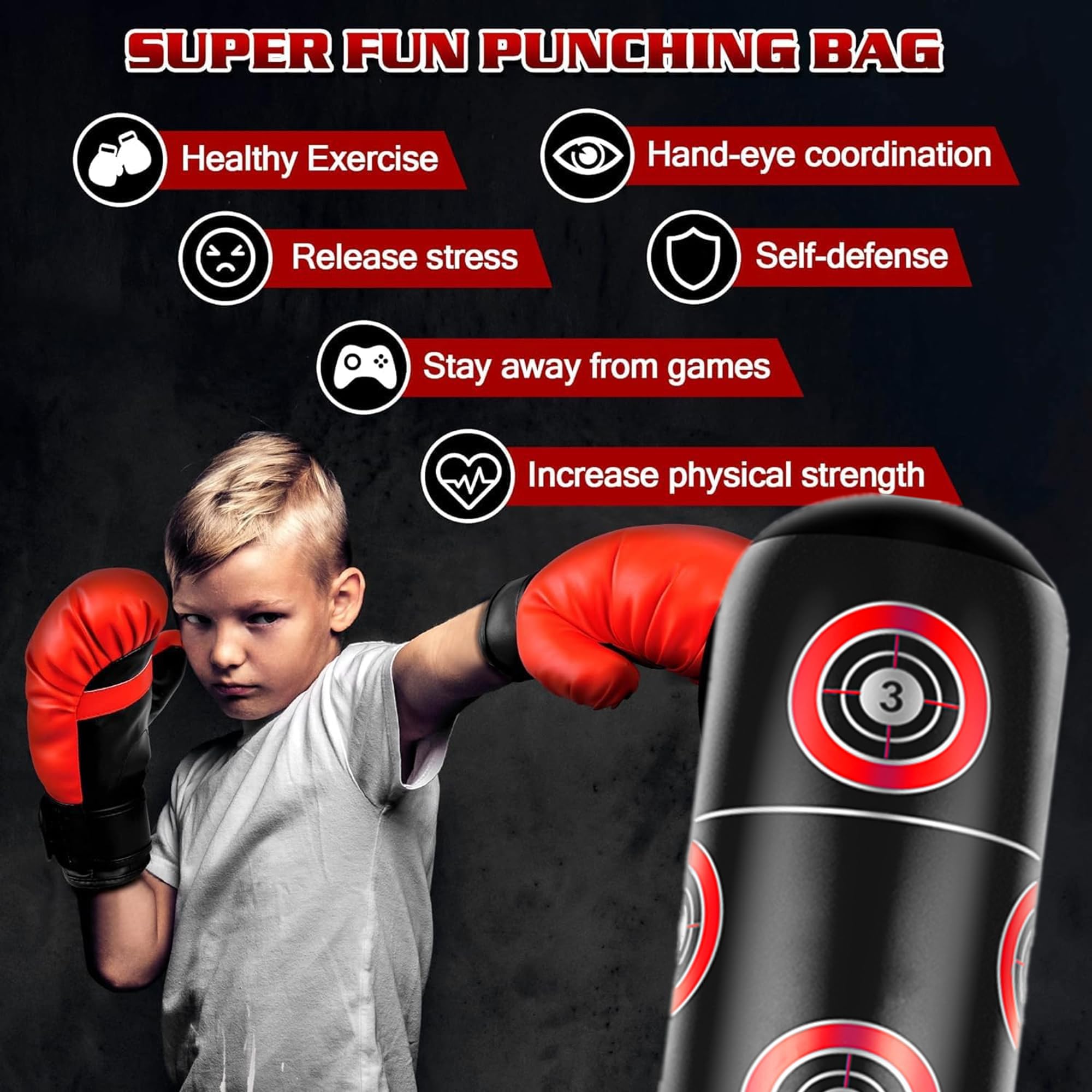 Sac Frappe Debout 160cm Sac De Frappe Gonflable Enfant S 160 Cm Avec Gants - Boxe Punching Ball Enfant 3 Ans Sac de Frappe enfants Boxe debout Gonflable Fitness Jouet - Jaune... VGEBY sac de frappe gonflable PVC 160 cm Fitness Hit Sac de Sable Service client : n'hésitez pas à nous contacter si vous avez besoin d'aide. Sac de Frappe Gonflable - Sac de Boxe Gonflable en PVC de 160 cm avec... Nous vous répondrons dans les 12 heures et ferons de notre mieux Évitez l'exposition au soleil Portable : léger et compact après vidage, facile à transporter et à ranger lorsqu'il n'est pas utilisé Encouragez à bouger : avez-vous eu du mal à limiter le temps d'écran dans votre maison ? Vous cherchez de nouvelles façons d'encourager le jeu actif ? Notre sac de frappe stimule l'engagement physique grâce à des défis interactifs qui font que le mouvement ressemble à un jeu passionnant