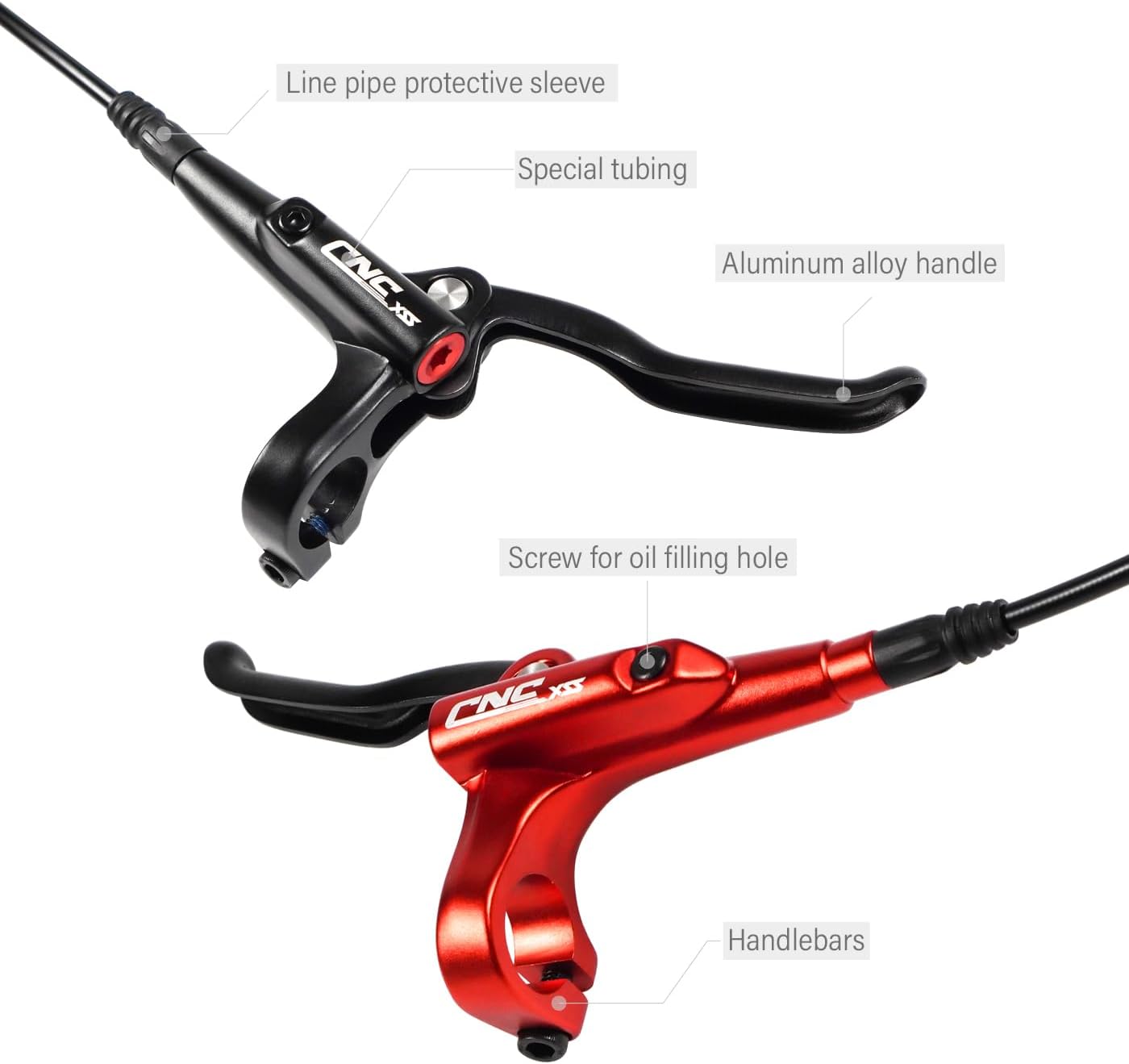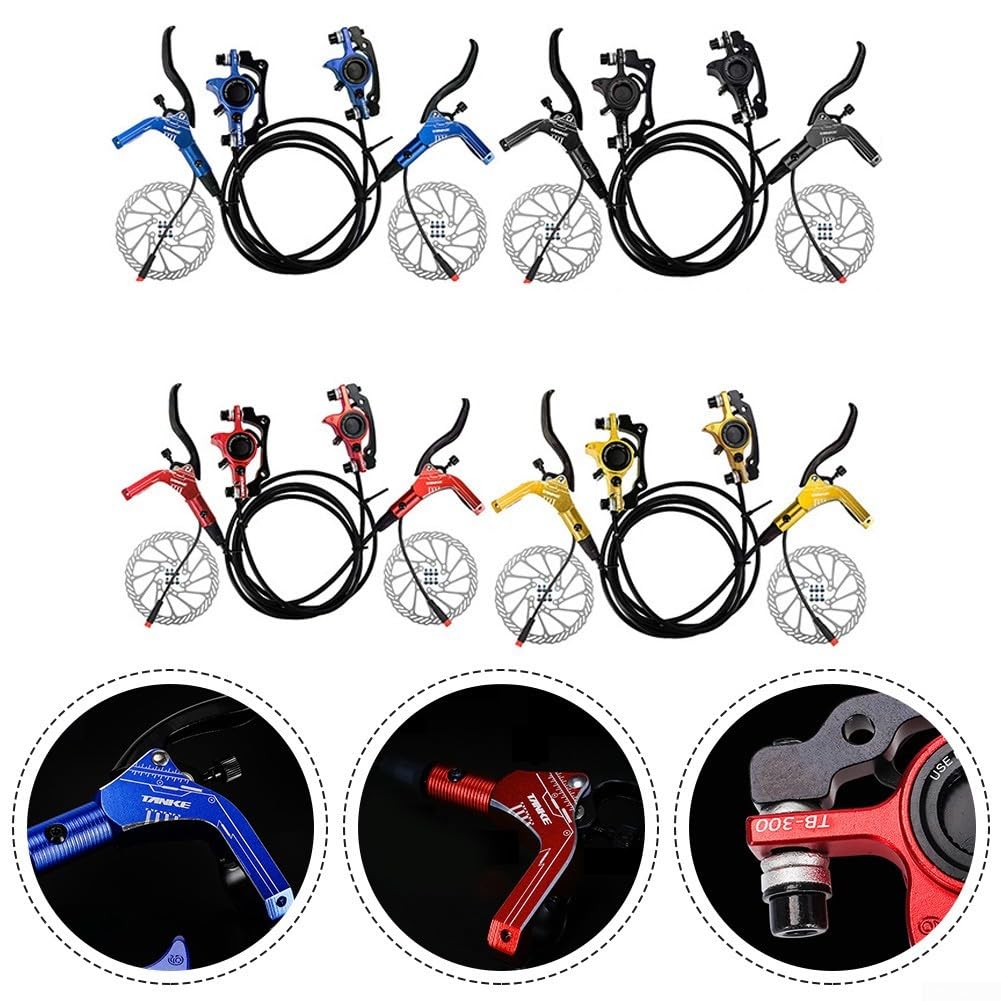 Caractéristiques : * Ensemble de freins hydrauliques haute performance : profitez d'un freinage fluide et fiable avec notre ensemble de freins hydrauliques VTT. Contenu de l'emballage : 1 paire de freins hydrauliques. * Options de couleur et de taille : disponible en noir, rouge, bleu, violet, vert et or, avec des tailles de tuyau d'huile avant (80 cm) et de tuyau d'huile arrière (145 cm) pour correspondre à votre style et à votre vélo. *Utilisation polyvalente : parfait pour les terrains de montagne, les sentiers tout-terrain, les forêts ou les trajets urbains, notre ensemble de freins hydrauliques offre confiance et contrôle dans n'importe quel environnement. Les composants conçus avec précision résistent, gèrent efficacement les variations de température et maintiennent des performances constantes pendant d'innombrables trajets, faisant de ces freins à disque un compagnon fiable pour vos aventures à vélo dans diverses conditions météorologiques. Ces freins hydrauliques réagissent instantanément à votre entrée, permettant des ajustements précis de la vitesse avec un minimum d'effort des doigts – une mise à niveau cruciale pour les cyclistes sérieux à la recherche d'une performance et d'une sécurité améliorées. Freins Hydrauliques Aluminium Couleur Frein Hydraulique Decathlon Kit De Frein à Disque Hydraulique Pour Vélo, Système à 4 Pistons Frein Hydraulique Trottinette Electrique Leviers Frein Deux Doigts DYISLAND SD-230X Ensemble de Freins à Disque hydrauliques pour VTT Couleur : noir, rouge, bleu, violet, vert, or., * Poids : 560 g/lot. Sa conception à quatre pistons assure un contrôle précis et un arrêt puissant. Le système hydraulique s'ajuste automatiquement à l'usure du patin, tout en maintenant une performance de freinage optimale quelles que soient les conditions de conduite – des chemins secs et poussiéreux aux sentiers humides et boueux. Découvrez nos freins hydrauliques pour vélos sur , offrant puissance et précision pour une sécurité accrue. Explorez les différents types adaptés à votre pratique Matériau : alliage d'aluminium. Ce jeu de freins hydrauliques améliore non seulement les performances de votre vélo, mais aussi son attrait esthétique. Que vous naviguiez sur des sentiers de montagne, que vous couliez à travers une piste unique, que vous fassiez des trajets dans des environnements urbains ou que vous couriez en descente, ces freins à 4 pistons offrent une puissance d'arrêt constante et fiable. Jeu de leviers de frein simples pour VTT - ZERODIS - Frein à disque... Options de style personnalisables : exprimez votre style personnel avec six options de couleurs vives : noir classique, rouge vif, bleu vif, violet élégant, vert vif ou or de qualité supérieure. Chaque lot comprend des tuyaux d'huile correctement dimensionnés (800 mm pour gauche/avant et 1450 mm pour droite/arrière) pour garantir une installation propre sur différents cadres et géométries de vélo sans routage gênant ou excès de tubes à gérer. Caractéristiques : * Nom du produit : jeu de freins à disque hydraulique à 4 pistons.