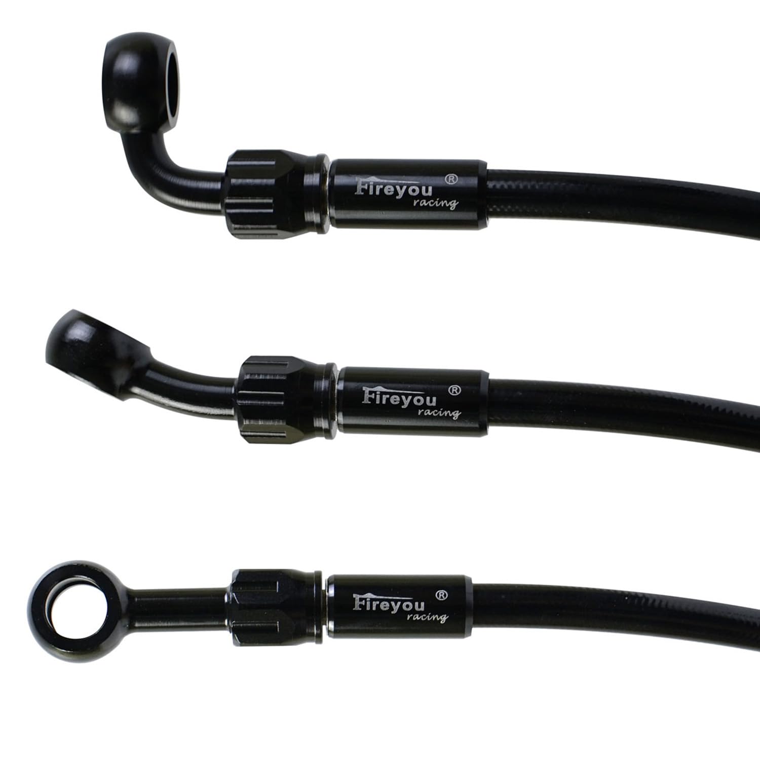 Kit Frein Moto 70 Cm Tuyau Frein Universel Pour Moto VTT Motocross Tressé Câble Frein Noir Vert Armée 28 AN3 1/8" 28 90 degrés M10 Raccord de tuyau de frein hydraulique en acier inoxydable tressé pour 39cm 0 degré - Tuyau De Frein Hydraulique En Acier Tressé, Universel... Convient à la plupart des motos tout-terrain, motocross, motos de route, scooters GY6 chinois, VTT, etc. Remarques :Veuillez prévoir de légères différences de dimensions en raison de différentes mesures manuelles. Contenu de l'emballage :1 tuyau de frein2 vis2 rondelles Fournit une pression de freinage à l'étrier de frein, améliore la sensibilité et la force de freinage, et raccourcit efficacement la distance de freinage. Compatible universellement : Convient à la plupart des motos, dirt pit bikes, motocross, motos de route, VTT, système de freinage hydraulique avec tuyau de frein M10x1., 25 à 28 degrés. Caractéristique du produit : Fabriqué en plastique souple, métal et caoutchouc, résistant à la chaleur, à l'usure et à la corrosion. Comment installer : Remplacez directement et installez sans outil spéciaux, pratique à utiliser. Tuyau Union moto Durable avec écrous courts raccor... – Grandado