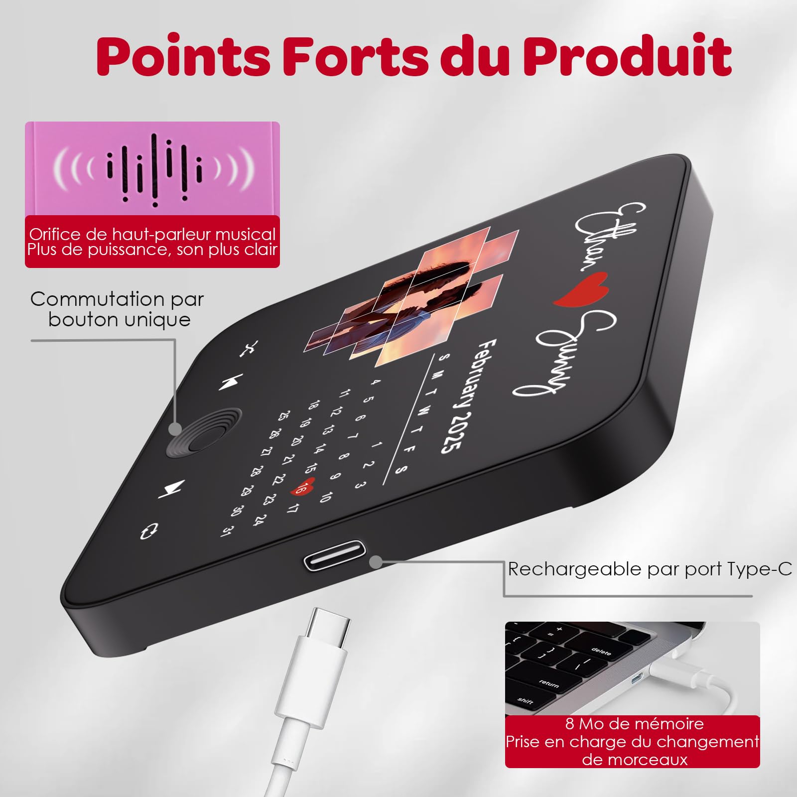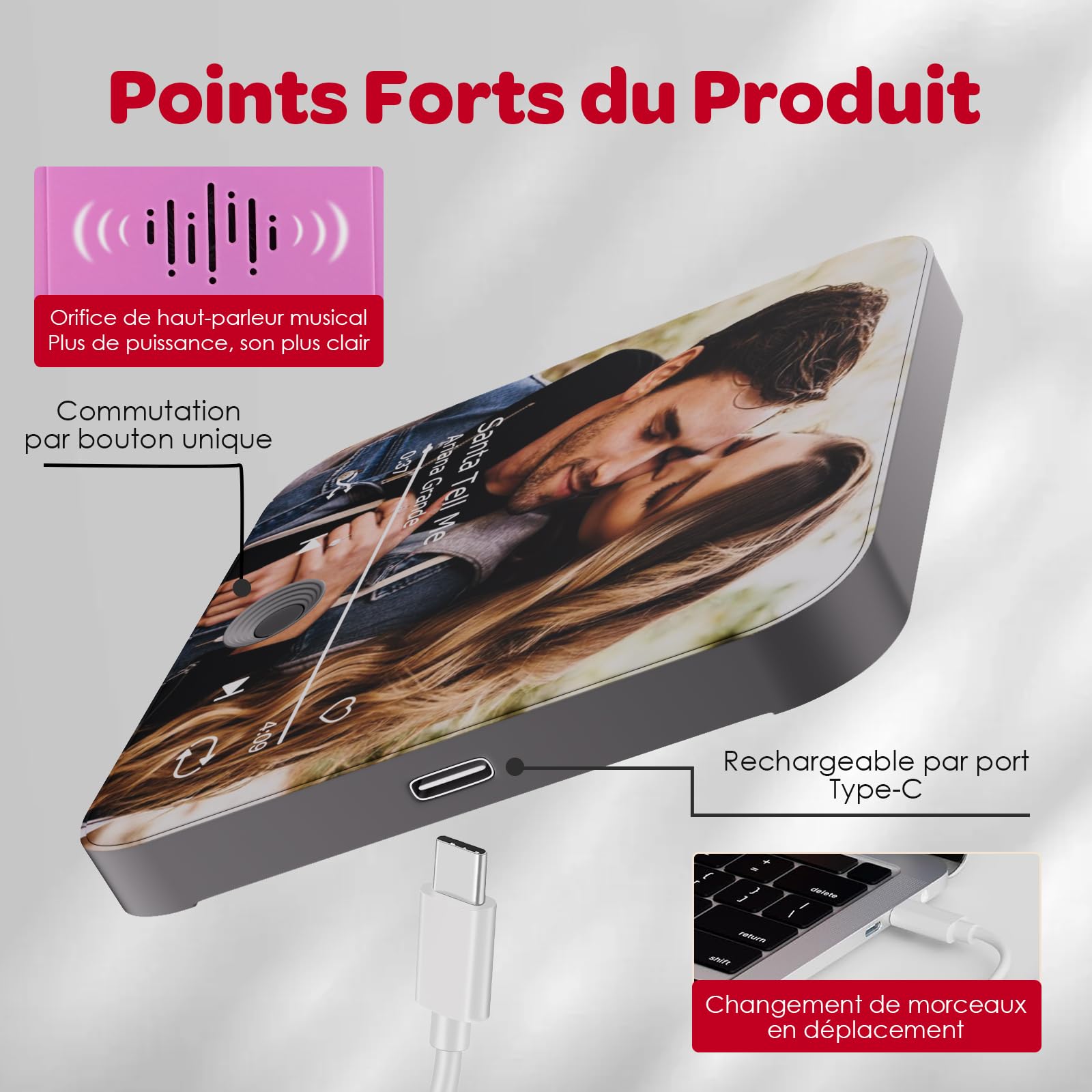 【Aimant Puissant & Son Exceptionnel】(1) Notre aimant musique rétro a des aimants renforcés qui résistent même aux portes de frigo claquées. Faites de ce cadeaux personnalisés un élément décoratif unique (2) Ajoutez votre photo et un lien musical (même Spotify). 【Qualité Supérieure & Durabilité】Contrairement aux aimant frigo traditionnels avec des trous de haut-parleur sur le dessus (qui accumulent la poussière), notre magnet frigo utilise un design breveté avec des haut-parleurs arrière. Aimant De Réfrigérateur Musical Personnalisé, Aimant De Réfrigérateur Photo Personnalisé Avec Des Chansons, Cadeaux Souvenir 【Cadeau Personnalisé pour Toutes les Occasions】Idéal pour la Saint-Valentin, la Fête des Mères/Pères, les anniversaires, Noël ou les anniversaires de mariage - ce cadeau personnalisé ravira vos proches. (2) Complétez votre aimant musical personnalisé en ajoutant une photo - qu'il s'agisse d'un moment en couple, d'un paysage ou de tout autre souvenir précieux witfox Cadeau Plaque Spotify Personnalisé pour Couple Aie - Cadre... Ce magnet personnalisable - un must-have pour votre frigo Retour d'expérience client 【Design Rapide & Service Client】(1) Cliquez sur Personnaliser maintenant. Aimant Rétro Anniversaire Saint-Valentin Magnet Musical Chanson Aimant Frigo Musical Personnalisable - Photo + Chanson - Cadeau Couple Noël Saint-Valentin Cadre Photo Réfrigérateur Cadre Photo Musique Magnet pour Frigo personnalisable Witfox s'engage à fournir des produits et services de qualité.