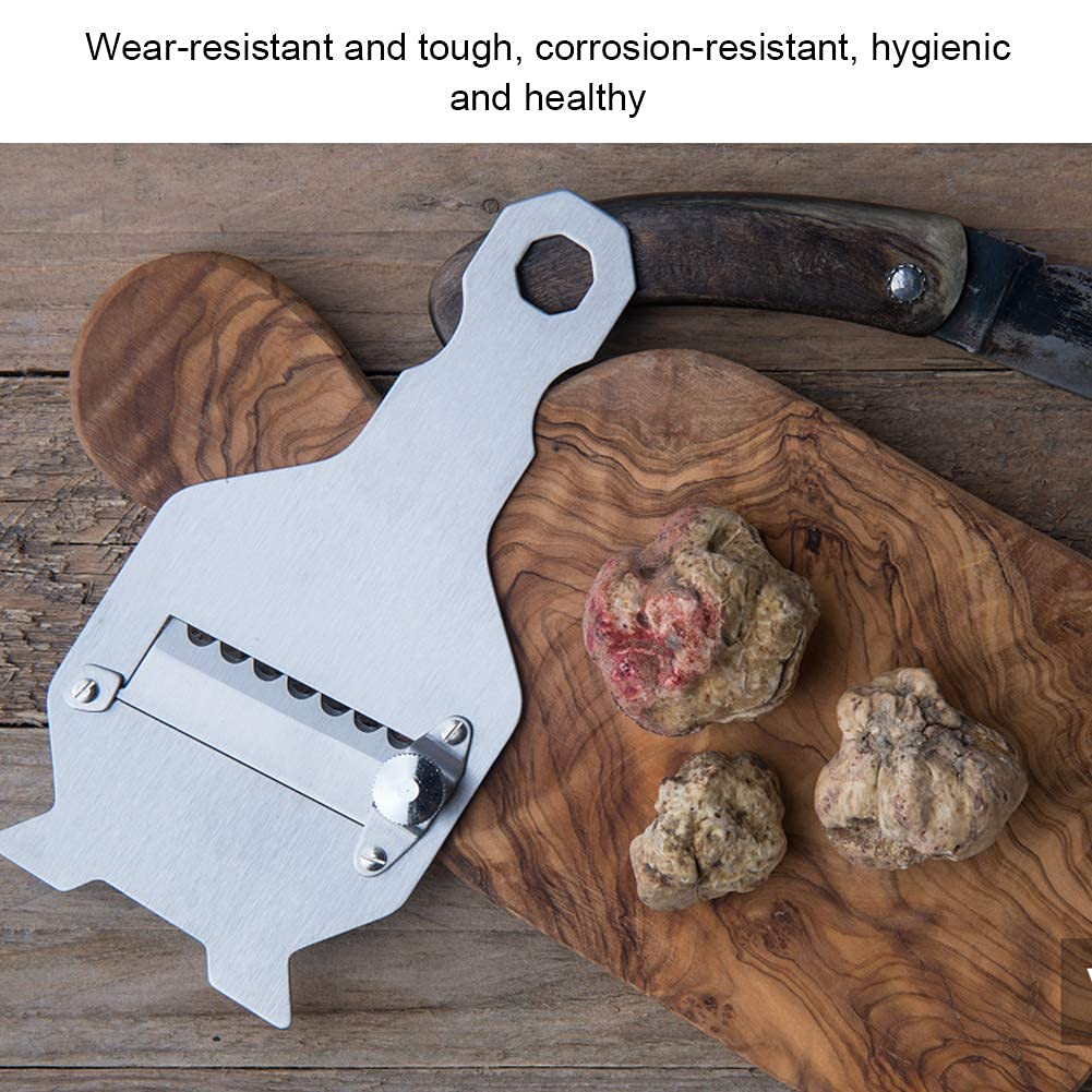 Trancheuse Truffes Réglable Trancheuse À Truffes, Trancheuse À Fromage À Truffes En Acier Truffes Chocolat Rasoir à Truffes et Petits Légumes - Mandolines de Cuisine Professionnelles HURRISE Coupe-râpe à truffes Râpe à truffes lame ondulée manche en bois... 🧀 Matériel: La trancheur de truffes est en acier inoxydable 430, dureté élevée, résistance à l'usure, solide, peut être utilisée plus longtemps. 🧀 Lames Réglables: La râpe à truffes est équipée d'une lame tranchante facilement réglable. Il suffit d'ajuster la vis, et vous pouvez couper la truffe et le fromage de minuscule à d'autres épaisseurs différentes. 🧀 La trancheur de truffes est ergonomiquement conçue et confortable et antidérapant à la main. Vous pouvez les adapter à vos besoins. 🧀 Facile à Ranger: Sur la poignée en bois de la trancheur de truffes, il y a un trou suspendu qui est pratique pour le stockage et économise de l'espace afin que vous puissiez l'accrocher directement au crochet sans exiger d'espace supplémentaire dans la cuisine. 🧀 Différentes Applications: Cette trancheur de truffes peut également être utilisée pour faire des aliments tels que la truffe, le chocolat, le fromage, les champignons, l'ail, les légumes, les carottes épaisses, etc. Râpe À Truffes, Râpe À Fromage, Couteau À Fromage En Acier Inoxydable...