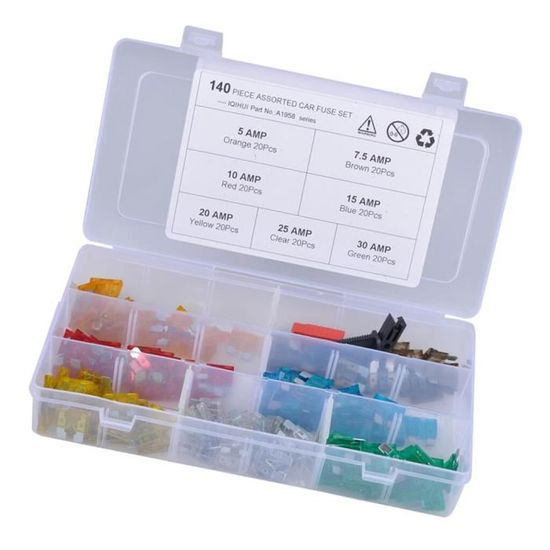 COC-7352625101598-kit automobile de fusibles 105PCS Kit de Fusibles de 【Pratique et pratique】Vous pouvez choisir entre 60 pièces ou 120 pièces de ce kit de fusibles qui comprend différents modèles de fusibles 5A/ 7,5A/10A/ 15A/ 20A/ 25A/ 30A pour répondre à vos différents besoins et assurer la sécurité de votre voiture. Fusibles Automobile 5A à 30A Fusibles 10 Pièces Kit D'insertion De Fusible De Voiture Petit Et Moyen Mini 5A 7.5A 10A 15A 20A Kit Fusibles Automobile Numéro d'article : LS000019Type : FusibleUtilisations : ÉlectricitéPetite tailleCaractéristiques tension : basse tensionforme : enfichableListe colisage:un 60 pièces :5 AMPx 1010 AMPx 1015 AMPx 1020 AMPx 1025 AMPx 1030 AMPx 10un 120 pièces :5 AMPx 107., 5AMP x 1010AMPx2015AMPx2020AMPx2025AMPx2030AMPx20Note:1., En raison des différents effets d'affichage et d'éclairage, la couleur réelle du produit peut être légèrement différente la couleur affichée sur l'image., Merci!, 2., En raison la mesure manuelle, un écart mesure 1 à 3 cm est autorisé. PANNEAU DE FUSIBLE Automobile Voiture Fusibles Automobiles Porte... Kit d'assortiment de fusibles de voiture 120 pièces, fusibles automobiles de type lame-taille Standard et Mini (2A/3A/5A/7.5A/10A/15A/ 20A/25A/30A/35A/40A... 【Identification sans effort】Avec la couleur et le code de chaque fusible sur son boîtier et un numéro sur le côté, vous pouvez trouver le bon fusible pour votre voiture sans aucun problème. 【Prévention des surcharges】En fusionnant rapidement et avec précision le courant, ces fusibles de voiture protègent votre voiture contre les surcharges et les courts-circuits. 【Vérification rapide】Les testeurs de circuit vous permettent de visualiser facilement l'état du fusible et de détecter tout problème. Spécification:Nom : fusibles voiture. Ils utilisent un alliage de zinc, un matériau de haute conductivité et de qualité. Protégez votre voiture contre les dommages électriques avec cet fusibles voiture.