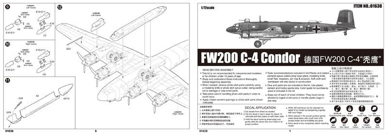 Le premier vol a eu lieu en juillet 1937., Bien qu'à l'origine un avion commercial, converti à un usage militaire, c'est en tant que bombardier de patrouille maritime que le Fw200C-3/4 Condor a fait sa marque pendant la Seconde Guerre mondiale. FOCKE WULF FW 200C-4 " CONDOR" 1943 . Maquette avion Trumpeter 1/48e - Maquettes et Figurines Total de pièces : 308 pièces. Focke Wulf Fw 200C-4 Condor Décal Focke-Wulf Fw 200C-4 Condor Espagne Service (conçu Pou... 1/48 48135 Maquette Seconde Guerre Mondiale Il s'agit d'une construction à ailes basses, principalement entièrement en métal. À ce titre, agissant en coopération avec les packs U-Boat, il a formé l'une des combinaisons Luftwaffe les plus efficaces de la guerre, et de nombreux convois devaient ruiner le moment où il a espionné un Condor au-dessus de l'horizon. Les meilleures offres pour (TRU02814) - Trumpeter 1:48 - Focke Wulf Fw 200C-4 Condor sont sur Comparez les prix et les spécificités des produits neufs et d 'occasion Pleins d 'articles en livraison gratuite Kit adapté aux enfants de 14 ans et aux adultes. Vers la fin de la guerre, lorsque les tactiques de maraude Fw 200 avaient été largement atténuées, plusieurs Condors ont été détournés vers des tâches de transport pour l'utilisation d' et de son personnel. Bien qu'à l'origine un avion commercial, converti à un usage militaire, c'est en tant que bombardier de patrouille maritime que le Fw200C-3/4 Condor a fait sa marque pendant la Seconde Guerre mondiale La production a continué jusqu'au début de l'I944 à travers les sous-types C-1, -2, -3, -4 et -6, un total de 263 Condors de toutes les versions en cours de construction. Pendant ce temps, la compagnie aérienne Fw 200B et les quelques C-0 de pré-production ont été mis en service comme transports. Plafond de service : 29000 pieds Portée : 3950 miles Numéro d'article 02814 Code barres : 6922803628141., Échelle 1:48 Type d'article Avion statique Longueur du modèle : 487 mm - Envergure : 684 mm. Description du produit Trumpeter 1:48 Focke Wulf Fw 200C-4 Condor # 02814 Le Fw200 a été conçu en 1936 comme avion de ligne pour Lufthansa. Instructions simples (français non garanti).