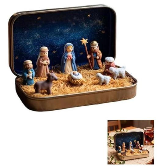 2x figurines chameau 16 cm figurines animalières - Figurines de Noël Utilisez-le pour créer une atmosphère chaleureuse et invitante pendant les vacances tout en mettant en valeur votre style distinctif. Crèche De Noël Originale Générique Mini Crèche Noël Boîte Métallique, Crèche Noël Pour Maison église étagère Conçue pour célébrer l'esprits de la saison, cette pièce maîtresse capte l'attention avec ses détails complexes et son charme festif. Figurines Maison, arbre et poche du Père Noël Photo libre de droit de Figurines Pour La Décoration Des Crèches De... Pièce d'exposition festive : avec son savoir-faire détaillé et sa reconstitution authentique de motifs de festival traditionnels, cette boîte de crèche de Noël convient aux ordinateurs de bureau ou aux collections d'art, vous permettant de célébrer les traditions des fêtes tout en rehaussant l'esthétique visuelle dans les espaces personnels ou partagés. Choix de cadeau : offrez comme cadeau de Noël à la famille, aux amis ou aux collègues pour transmettre les bénédictions et la chaleur des vacances. Stockage compact et sécurisé : doté d'une petite crèche dans une boîte en métal avec un design intégré absorbant les chocs, ce produit garantit une protection fiable contre les dommages liés au transport tout en conservant une facilité de portabilité et des solutions de stockage efficaces et peu encombrantes. Cette pièce polyvalente améliore l'ambiance de n'importe quel espace, qu'elle soit exposée dans votre maison, votre salon, votre chambre, votre entrée, votre bureau ou sur une étagère. Compact et portable : la crèche dans une boîte en fer blanc est conçue pour se fondre dans divers styles de décoration intérieure tout en offrant des avantages de portabilité et d'économie d'espace, ce qui la rend idéale pour les petites zones telles que les bureaux, les entrées ou les étagères où des affichages significatifs sont souhaités sans encombrer l'espace. La pièce maîtresse de table de Noël est une décoration de poche présentant le motif de la Sainte Famille, ce qui en fait un ajout significatif à votre décor de vacances saisonnières.