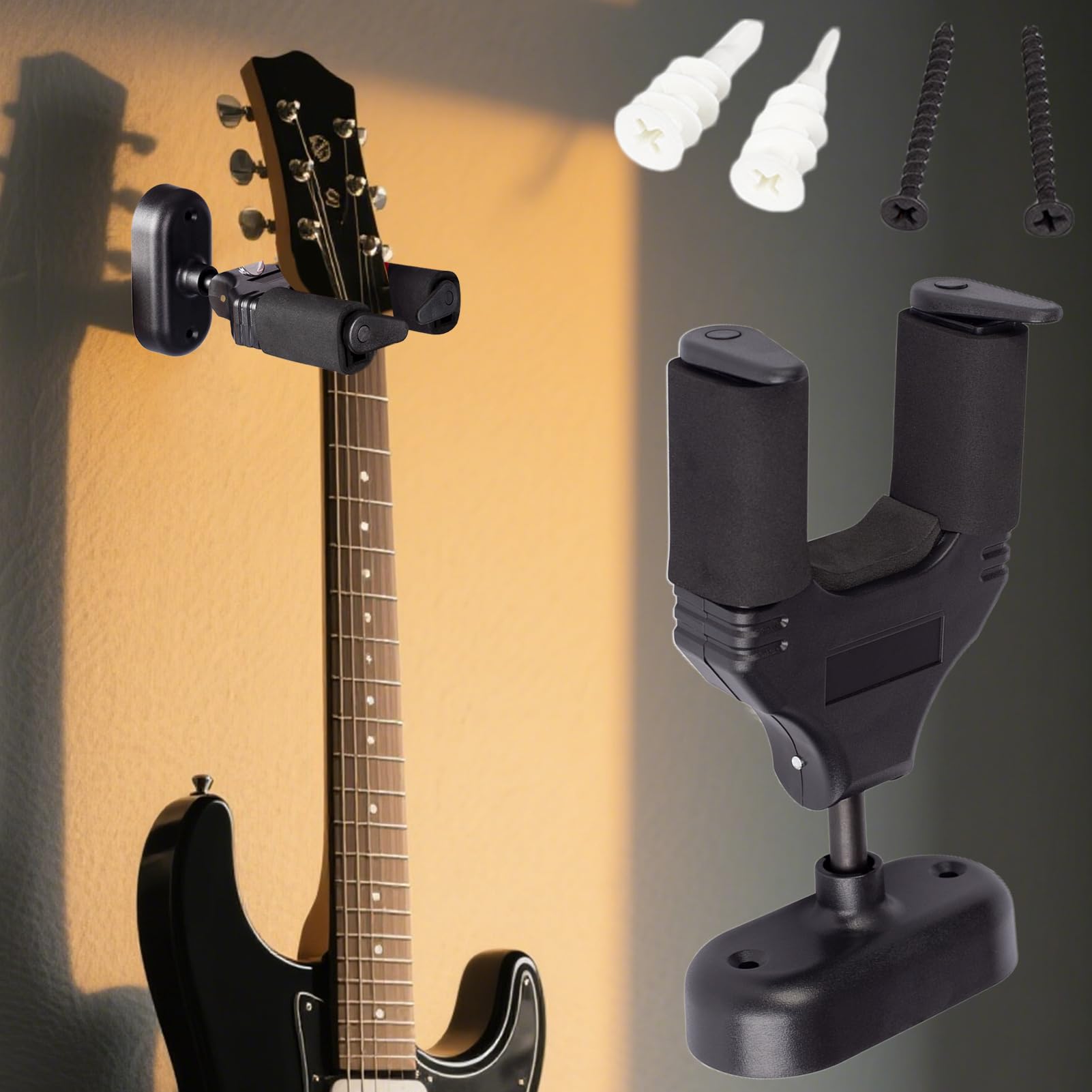 Stand & support guitare & basse K&m 16235 Support mural pour guitare et Protection pour votre guitare. Crochet Guitare Universel Générique Support Mural Pour Guitare Basse Accessoire Rangement Instrument Le support comporte des soudures renforcées pour une durabilité accrue et le matériau de remplissage est du caoutchouc souple qui maintient votre guitare stable. Facile à utiliser : accrochez facilement votre guitare acoustique, basse ou électrique en utilisant ce support de guitare simple à utiliser. Sa fonction rotative vous permet d'afficher plusieurs instruments sur le mur, économisant de l'espace tout en mettant en valeur votre collection Ce support mural pour guitare combine robustesse et une conception antidérapante pour protéger et organiser vos instruments. Réutilisable et adaptable, il... Largement utilisé : notre support de guitare est une œuvre d'art , fabriquée à la main par des artisans qualifiés. Facile à utiliser : ce support de guitare facilite l'installation et l'affichage de vos guitares acoustiques, basses et électriques. Cadeau délicat : rangez votre chambre et exposez facilement votre guitare avec ce cintre pour guitare. Spécification:Matériel: bois + métal + caoutchoucPoids : 170gDimensions: (environ) 14*10*4,6 cm/5,51*3,94*1,81 poucesListe de colisage:1 * cintre de guitare (avec accessoires de montage à vis) Grâce à la fonction rotative, vous pouvez gagner de la place et mettre en valeur votre collection en accrochant plusieurs instruments au mur. Gardez votre guitare en sécurité avec notre cintre pour guitare !