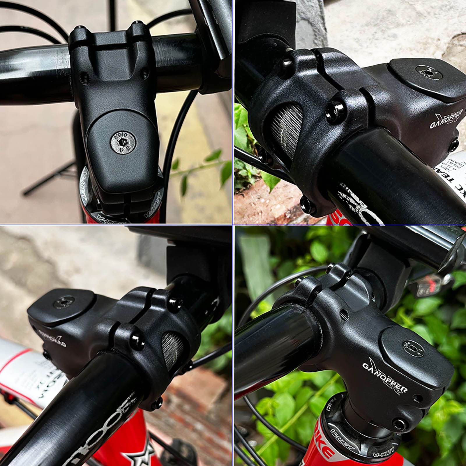 Branchez la potence d'origine de la fourche avant. Potence VTT/route à plongeur 22,2mm et cintre 25,4 mm - Partie cycle... Diamètre du guidon de vélo : 31,8 mm (25,4 mm, application de shim), fourche de vélo : 28,6 mm (1-1/8), longueur : 90 mm (distance entre les essieux des deux trous). Matériau : alliage d'aluminium AL6061 T6., Boulon : M5 x 18 mm. Tige Guidon Vélo Angle 35 GANOPPER Potence De Vélo 31.8 - Courte - VTT - Potence De Guidon 25,4 - Shim (31,8 X 90 Mm Potence Vélo Contenu : 1 potence de guidon VTT 31,8 (35 degrés). Caractéristiques : Collier de serrage pour guidon de vélo : 31,8 mm., Potence Shimano : 31,8 à 25,4., Tube de fourche de vélo : 28,6 mm. Convient pour VTT, vélo de route, VTT, BMX, etc. Caractéristiques : universel pour potence de vélo de 31,8/25,4., Disque de support supplémentaire de guidon de vélo de 31,8 à 25,4 dans le paquet. Installation facile : il suffit de brancher la fourche avant d'origine., M5 x 18 mm. Style : tige haute intensité. Caractéristiques : Permet de soulever le guidon pour une conduite plus confortable., Facile à installer. Cette potence est adaptée pour les travaux de bricolage et de mise à niveau modifiés et rend la position de conduite beaucoup plus confortable et flexible. Installation facile Longueur : 70/80/90/110 mm Angle : 35° Couleur : noir., Poids : 70 mm : 125 g., 80 mm : 132 g., 90 mm : 133 g., 110 mm : 163 g. La pince à quatre boulons maintient la tige en place. Potence Look Aerostem (31.8 Mm) - Noir Mat - S'intègre dans n'importe