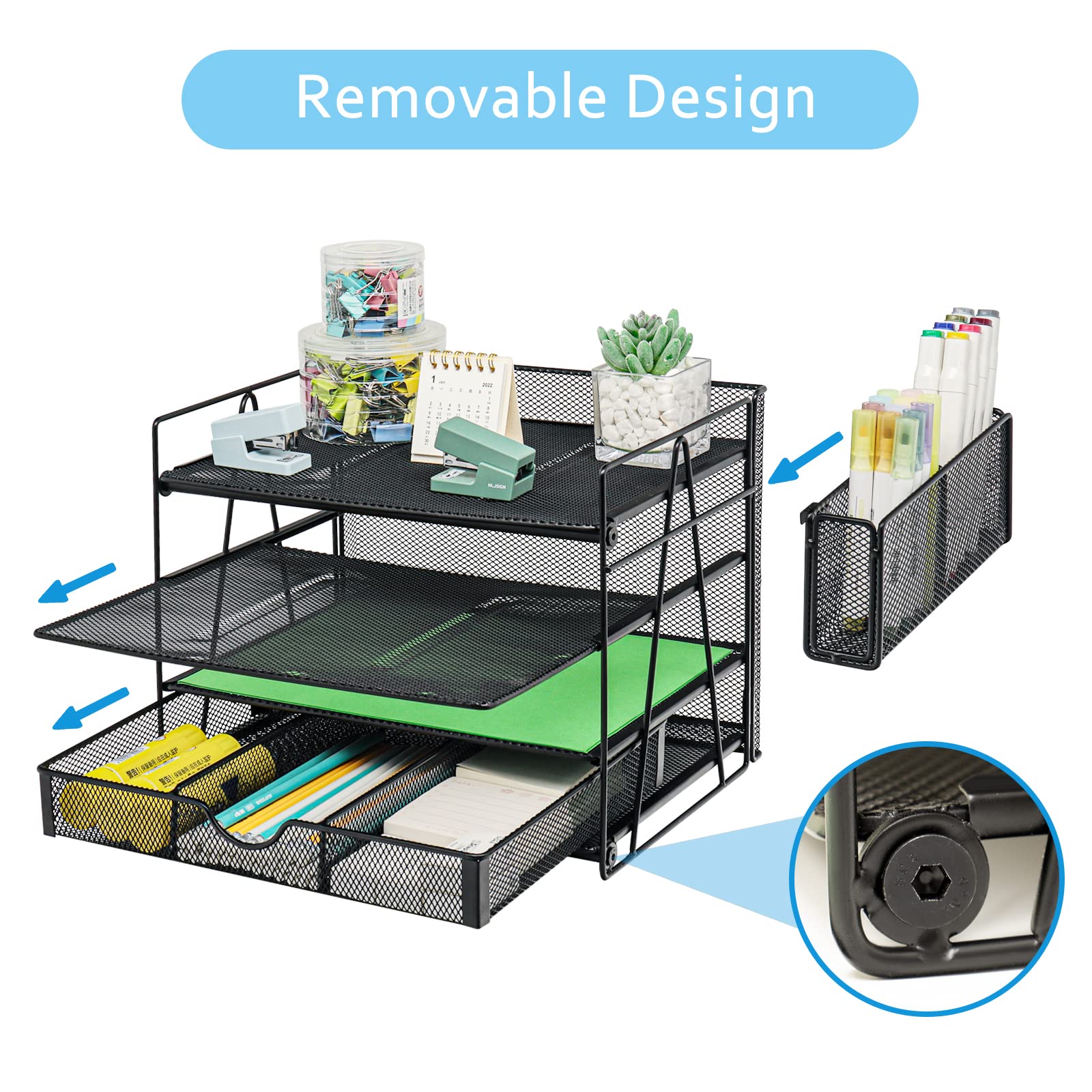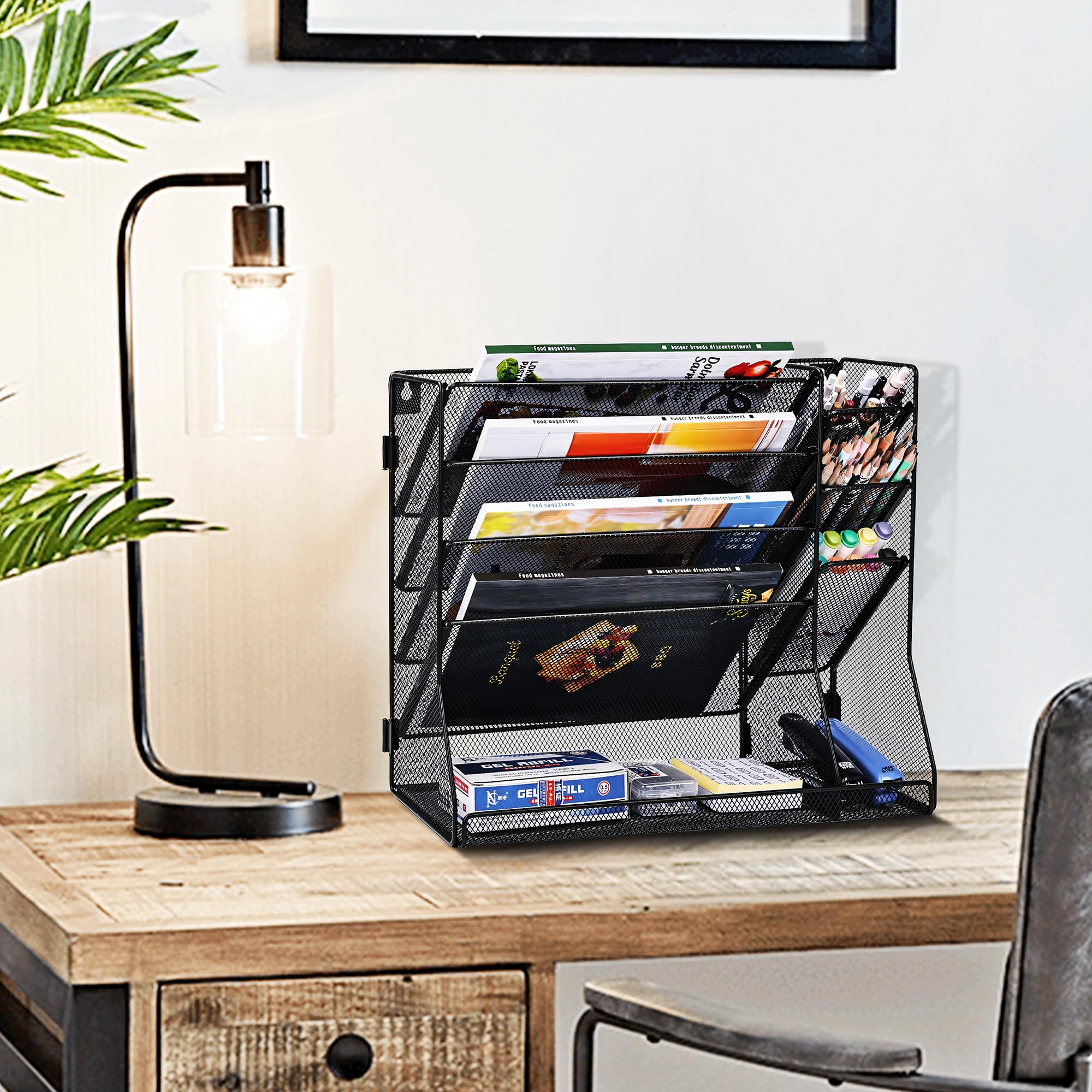 Rangement Vertical Gain De Place GDINDINFAN Organiseur Ural En Aille à Suspendre Pour Docuents En Organiseur Bureau Noir Antique PUNCIA Corbeilles à Courrier en Maille Métallique à 4 Niveaux Organiseur de bureau en maille métallique noire, 1 pièce, bureau... Parfait pour trier le courrier entrant et sortant, stocker des dossiers, organiser des reçus ou gérer les documents quotidiens. Idéal pour les bureaux, les écoles ou les espaces de travail à domicile, cet organiseur polyvalent aide à créer un système efficace pour gérer les documents et réduire l'encombrement du bureau. Organisation polyvalente : trieur de courrier de bureau à 4 compartiments avec tiroir, parfait pour organiser lettres, documents, fichiers et fournitures de bureau La construction en maille noire avec des accents antiques ajoute une touche professionnelle tout en gardant vos documents visibles et facilement accessibles. Construction durable : fabriqué à partir de matériau en maille métallique robuste dans une élégante finition noire/antique qui complète tout décor de bureau Design compact et vertical pour garder les documents soigneusement triés tout en optimisant l'utilisation de l'espace de bureau Dimensions pratiques : chaque compartiment mesure 6,3 cm de large, parfait pour les documents et dossiers de taille lettre standard Lot de 4 bacs à Papier epilables, bac à courrier pour Bureau, Support...