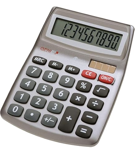 TD® Grande calculatrice solaire de bureau multifonction, double Les calculatrices Genie sont disponibles pour toutes les exigences et applications. D'un appareil pratique pour les déplacements à l'assistant pour le bureau à la calculatrice polyvalente pour l'école et l'étude, GENIE offre la solution pour vos tâches informatiques Genie P8 Double Alimentation Calculatrice Simple MACHINE A CALCULER DE BUREAU DONAU GM 12 CHIFFRES DOUBLE ALIMENTATION - JPP Services Calculatrice De Bureau Calculatrice école Bureau Maison Genie - Les calculatrices sont l'outil idéal pour vos factures à l'école, au travail, à la maison ou en déplacement en raison de leur fonctionnalité, de leur structure pratique et de leur disposition de clavier significative. Les calculatrices géniales sont disponibles pour tous les besoins et applications. Genie – 840 DR – Calculatrice de bureau – Affichage à 10 chiffres... Faites confiance à des années d'expérience et profitez de la qualité éprouvée du génie. Alimentation : Dual Power (fonctionne à l'énergie solaire avec suffisamment de lumière et commutation immédiate sur batterie en cas de faible luminosité) / pile incluse dans la livraison. Dimensions : 11,5 x 7 x 1 cm - Poids : 43 g Fonctions : mode Rappel de base [+] [-] [x] [/], calcul racine [√], pourcentage [%], 3 touches mémoire [M+] [M-] [MRC], effacement : dernière entrée [CE], changement de signe [+/-]