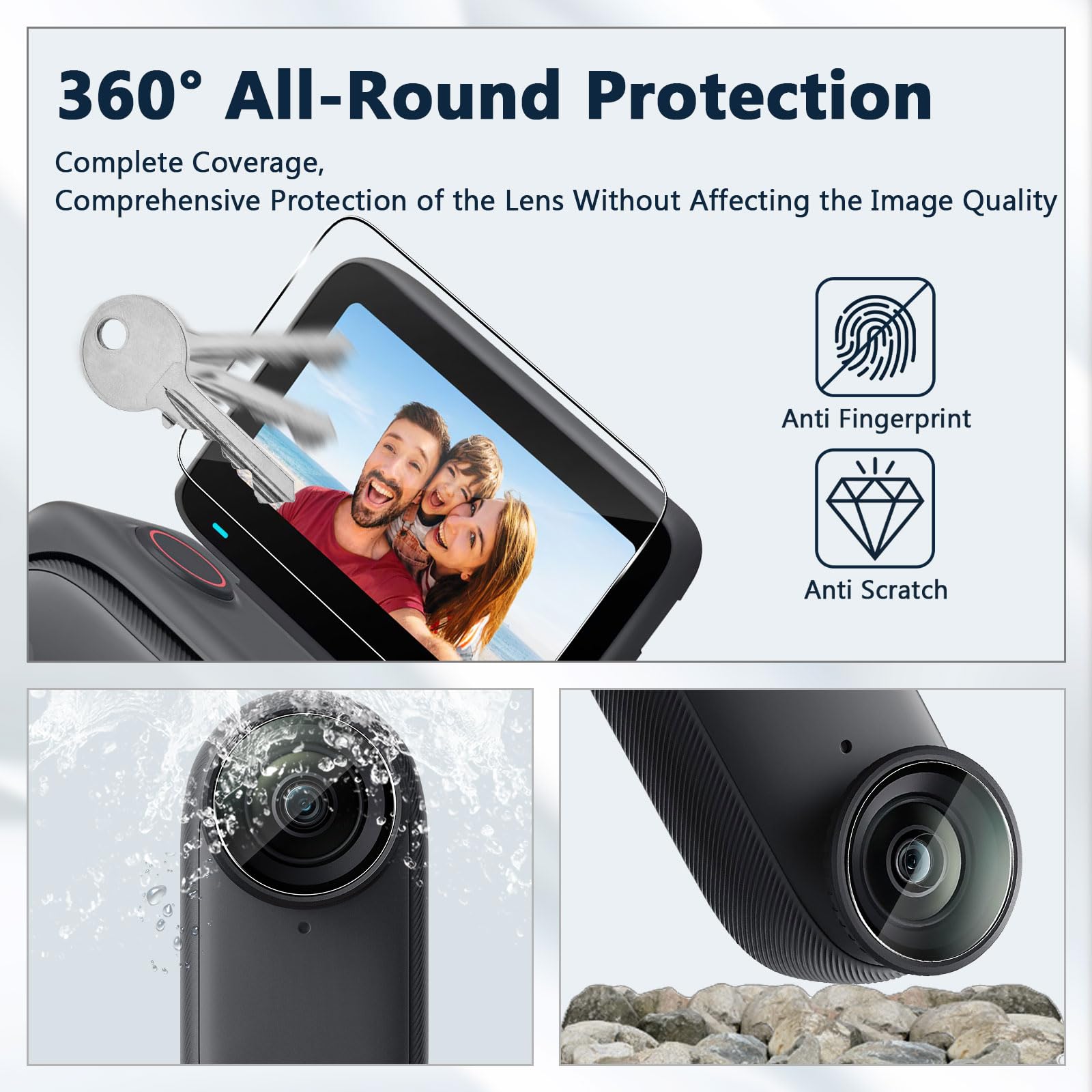Insta 360 Go Ultra Accessoire Caméra Protection Écran Insta360 GO 3S Funrae - Verre Trempé 9H, 3+3 Pièces Film Protection 9h Protecteur Lentille Camera Fiable pour Insta360 GO 3S Protection d'objectif pour une qualité d'image supé e Pour protéger ton Insta360 GO 3S des rayures et chocs, ce kit Funrae est top ! Il inclut 2 films en verre trempé pour l'écran 2 pour l'objectif... Verre Trempé Compatible avec Insta360 Go Ultra, Veuillez vérifier le modèle de votre avant d'acheter Protégez parfaitement l'écran des rayures, de la poussière, des rayures, des traces de doigts et de l'usure normale. Il est résistant à la poussière et aux chocs et offre une protection fiable contre les rayures, les impacts et l'eau 【Modèles compatibles】Spécialement conçu pour le protecteur d'écran et le protecteur d'objectif du Insta360 Go Ultra. Gardez votre appareil photo dans son état de visualisation haute définition d'origine 【Sans bulles et anti-traces de doigts】Utilisez la technologie de revêtement imperméable et oléophobe pour isoler efficacement les taches d'eau et d'huile sur la surface du film, et essuyez doucement, ne laissant aucun résidu, qui est très lisse et empêche efficacement la sueur et la graisse de laisser des empreintes digitales Lorsque vous touchez votre caméra Insta360 Go Ultra, le film trempé est comme s'il n'était pas installé, vous offrant une expérience tactile parfaite Cognez-la, frappez-la, laissez-la tomber : cette protection en verre trempé haute résistance protégera votre écran tactile. Offre une transmission de lumière supérieure à 90 % pour une clarté exceptionnelle sans affecter la sensibilité de l'écran tactile. Utilisation fluide, d’un bord à l’autre