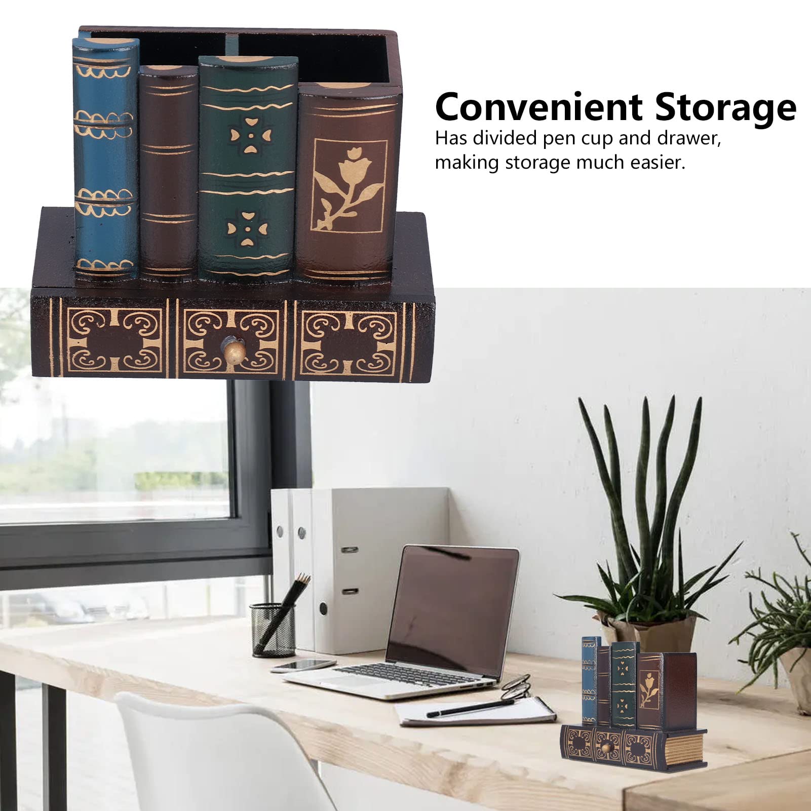Organisateur Crayons Design Livre GOTOTOP Porte-stylo Pour Bureau Porte-stylo En Bois Conception Géométrique Grande Capacité Porte Porte-stylo Décoratif Bois Porte-stylo,2--Porte crayon en bois, boîte à crayons, porte crayon en Plateau en bos pour stylos Porte-stylo en bos Porte-stylos en bos pour bureau porte-stylo... Spécifications: Nom du produit : porte-stylo en forme de livre Matériau du produit : bois Poids du produit : 328 g Dimensions du produit : environ 15 x 6,5 x 13,5 cm. Remarques : En raison de l'éclairage et des paramètres propres à chaque écran, la couleur de l'article peut légèrement différer de celle de la photo. Les mesures étant prises à la main, les tailles indiquées peuvent varier de 1 à 3 cm. Transformez votre espace de travail avec notre porte-crayon en forme de livre. Apparence élégante et créative : avec son design complexe inspiré de l'esthétique vintage Utilisation polyvalente : soulevez votre travail avec ce porte-stylo multifonctionnel, qui agit comme un accessoire décoratif accrocheur, apportant charme et organisation sur toutes les surfaces. Artisanat exquis : du design complexe aux détails précis Réveil Porte Crayon Bois | Réveil-Matin-Original