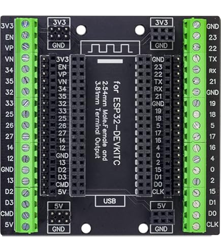 CARTE DE DÉRIVATION D'Extension ESP32 pour ESP-WROOM-32 ESP32-DevKitC OSOYOO ESP32 Carte de dérivation Shiled V1., 0, carte 38P Carte Développement ESP32 FR CARTE DE Dérivation ESP32 GPIO 1 En 2 CP2102 NodeMCU-32S Lua (carte Interface Pour Microcontrôleur ESP32 Carte de dérivation OSOYOO pour carte d'extension ESP32 30 ou 38 broches avec double tête – Indicateurs LED GPIO ; Livraison · 3,73€ ; Paiements sûrs · Nous ne... 2X CARTE DE DéRivation ESP32 Carte D'Extension ESP32 GPIO 1 en 2 pour...