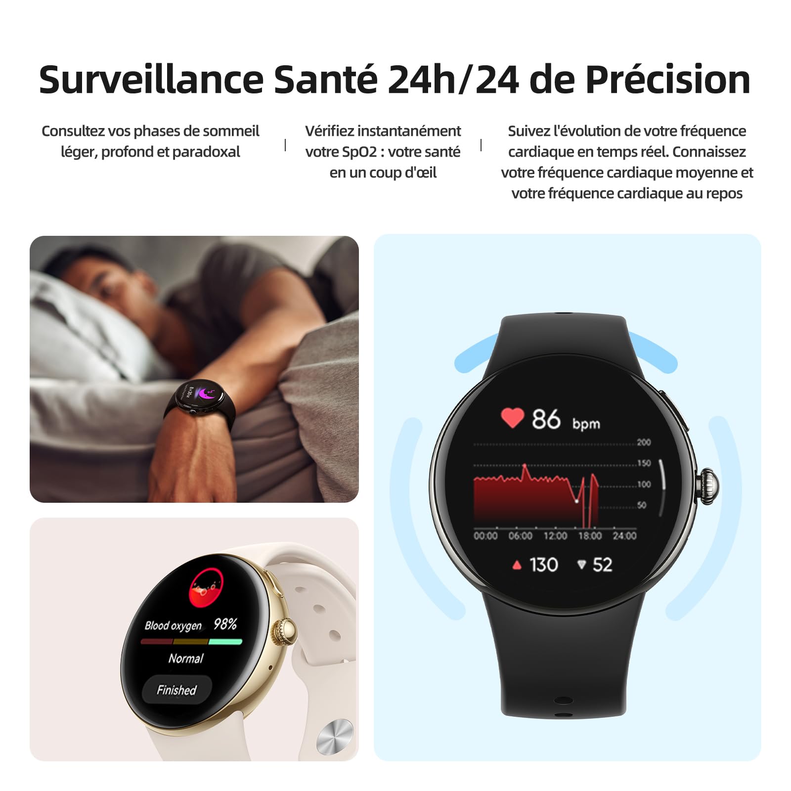 📸 Contrôle de l'appareil photo – Après la connexion à votre téléphone via Bluetooth, immortalisez facilement vos plus beaux moments. Rendez votre formation plus efficace et scientifique Vous pouvez également basculer entre différents modes sportifs, comme la course à pied, le cyclisme, l'aérobic et d'autres entraînements de triathlon, directement depuis la montre pour répondre à vos différents besoins d'entraînement. Smartwatch Natation Piscine Eau Libre Montre Connectée Avec GPS Intégré,5ATM Étanche Smartwatch écran AMOLED Cela garantit une visibilité optimale et une expérience interactive fluide. ) d'un simple mouvement du poignet Après avoir synchronisé votre téléphone, vous pouvez consulter la carte de la ville correspondante dans l'app. Nous sommes convaincus que la communication est la meilleure solution pour résoudre les problèmes. 【 Intégrés GPS et Boussole】 Cette montre connectée intègre un GPS haute précision, vous permettant d'enregistrer et de visualiser votre itinéraire de course (Trace linéaire) sans avoir à transporter votre téléphone. Parsonver Montre intelligente pour homme avec écran HD de 43 mm 【100+ Modes Sportifs Intégrés & Notifications de Messages 】Cette montre connectee propose plus de 100 modes sportifs intégrés, et pas seulement pour la natation. Nous fournissons également des manuels d'utilisation, des tutoriels vidéo et une équipe d'assistance technique à votre disposition. Grâce à la technologie Always-on Display, vous pouvez lire l'heure sans activer l'écran. Que vous ayez besoin d'optimiser votre allure de course, d'améliorer vos performances de natation ou d'ajuster votre programme d'entraînement, l'IA réagit instantanément en un seul clic. Montre Connectée Pour Femme Hommefitness Tracker 5Atm Natation Étanche... ⏰ Alarme – Réveillez-vous chaque matin avec de douces vibrations. Elle identifie intelligemment les différentes nages (crawl, brasse, dos crawlé, etc. 【Autonomie Longue Durée】Cette montre connecté est équipée d'une batterie intégrée de 300 mAh, rechargeable en seulement 2 heures et offrant jusqu'à 7 jours d'autonomie. 【Assistant de Suivi de Santé】 Outre la fonction natation, le nouveau capteur optique de fréquence cardiaque de cette montre connectee permet un suivi de la fréquence cardiaque tout au long de la journée et sous l'eau, pour des mesures plus rapides et plus précises. 🌞 Réglage de la luminosité – Adapte automatiquement la luminosité de l'écran à la lumière ambiante, pour une lecture claire des informations quelle que soit la luminosité. 【Écran AMOLED et Cadrans Dynamiques】 Cette montre connecte est dotée d'un écran AMOLED ultra-haute résolution de 466 x 466 pixels avec un taux de rafraîchissement de 60 Hz. Disponible Assistant intelligent 24h/24, interprétation automatique de vos données sportives et de santé. Ces fonctionnalités intelligentes offrent une variété d'applications pratiques pour simplifier et agrémenter votre quotidien. 🌐 Prise en charge multilingue – Facile à utiliser, sans stress. Il surveille également la saturation en oxygène du sang (SpO2) pour un aperçu complet de votre condition physique 🌬️ Exercices de respiration – Des exercices de respiration guidés aident à réduire le stress et à améliorer votre bien-être physique et mental tout au long de la journée. 🚶 Rappel de station debout – Combattez la fatigue avec des exercices de station debout et d'étirements pour booster votre productivité et votre créativité. Équipée d’un moniteur de fréquence cardiaque sous-marin, elle vous permet de suivre l’intensité de votre effort même dans l’eau. 【AI Intelligente Analyse Sportive】 L'application intelligente mise à niveau fournit des fonctions de comparaison dynamique exclusives sur 7 et 21 jours, utilisant des algorithmes d'IA pour analyser en profondeur vos tendances de performances d'exercice et présenter intuitivement votre statut d'exercice. Nous sommes toujours prêts à vous aider et à vous apporter une solution satisfaisante [Étanchéité À 5ATM Pour La Natation]La montre connectée Parsonver FF2 offre une excellente étanchéité, capable de résister à une pression d’eau allant jusqu’à 50 mètres, vous permettant de nager dans la piscine et de profiter de chaque mouvement sans vous soucier de la sécurité