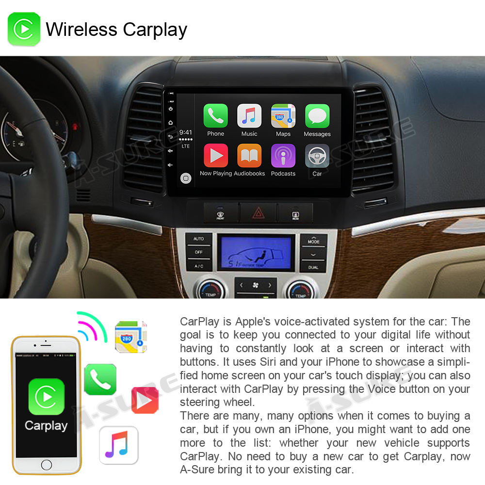 Pour Hyundai Santa Fe, 8 Core et 4G 64G]Processeur Qualcomm, puce de course rapide 1,8 GHz, stéréo de voiture Android pour Hyundai Santa Fe 2006, 2007... Radio FM/RDS Bluetooth Réglages DSP et Égaliseur Haute Résolution Design de la Fenêtre [CarPlay & Android Auto Sans Fil] Autoradio android hyundai santa fe avec CarPlay et Android Auto, connexion sans fil Bluetooth et WiFi. Prend en charge la fonction de commande au volant, Conduisez en toute sécurité et en toute simplicité en utilisant et en contrôlant les boutons du volant. L'autoradio obtiendra rapidement l'application sur votre téléphone prise en charge par le système actuel, comme le message, la musique, et réalisez la commande vocale comme Siri ou Go-ogle pour utiliser les applications ou contrôler l'autoradio, réduit les problèmes de fonctionnement manuel et améliore la sécurité de conduite. Système : Android 15 Chipset : SM4250 Qualcomm Snapdragon Mémoire : 4 Go (RAM) + 64 Go (ROM) Processeur : 8 cœurs, 1,8 GHz [Multifonctions et Service Après-vente] Wi-Fi et point d'accès / Lien Miroir / Thèmes d'interface Utilisateur / Lecture Vidéo HD 1080P / Écran Partagé / Navigation GPS / Fonction Bluetooth / Commandes au Volant / Prévisions Météo (en Option) / Radio FM RDS / Cartes en Ligne et hors Ligne / Entrée USB / Thèmes de Laboratoire de Shaders Avancés / Image Dans l'image / Conception de Fenêtres / Audio Haute Résolution DSP / Effets Dynamiques 3D / Réglage du ventilateur. Écran 7 HD Apple CarPlay Android Auto Hyundai Santa Fe | KW-M785DBW [Lien Miroir] Miroir votre téléphone portable sur autoradio carplay hyundai santa fe, vous pouvez alors utiliser la navigation GPS ou regarder des vidéos. Effets dynamiques 3D pour Voitures Incrustation d'image Thèmes Avancés du Laboratoire Shader écran 9 Pouces Qualcomm 4Go 64Go 2005-2015 Hyundai Santafe 9 Pouces Android 12.0 HD écran Tactile Bluetooth Radio GPS Navigation AUX FM MP4 Musique WIFI Prise En Charge Carplay USB 4G Caméra De Recul DVR SWC Autoradio Plug And Play Santa Fe Commandes au Volant Entrée caméra de Recul Ventilateur de Refroidissement (à activer dans les paramètres) Utilisant le chipset Qualcomm Snapdragon, un système 8 cœurs et Android 15, 4 Go de RAM vous offrent une expérience plus fluide, tandis que 64 Go de ROM vous permettent de télécharger et de stocker davantage de contenus. CarPlay et Android Auto sans fil Vidéo de marchand Bluetooth 5.1 und EQ & DSP & Hi-Res, FM/RDS-Radio] Das qualcomm snapdragon autoradio verfügt über integriertes Bluetooth und Mikrofon. Sie können freihändig telefonieren, Bluetooth-Musik streamen und Ihr Telefonbuch automatisch laden [Navigation GPS et Wi-Fi/Hotspot] L'autoradio hyundai santa fe est préinstallé avec Goo-gle Maps, vous permettant de consulter les conditions de circulation en temps réel grâce au Wi-Fi. Un microphone et une caméra étanche sont offerts. Remboursement sous 30 jours, assistance après-vente pendant 24 mois. Radio FM/RDS haute qualité avec recherche automatique des chaînes, fréquence 87,5-108 FM, préréglage de 18 chaînes. Écran tactile IPS haute définition de 9 pouces avec une résolution de 1280x720., Cadre et câbles inclus., Plug and Play. Nous fournissons une assistance technique après-vente 7*16 heures pour vous aider à résoudre les problèmes d'installation et de fonctionnement.