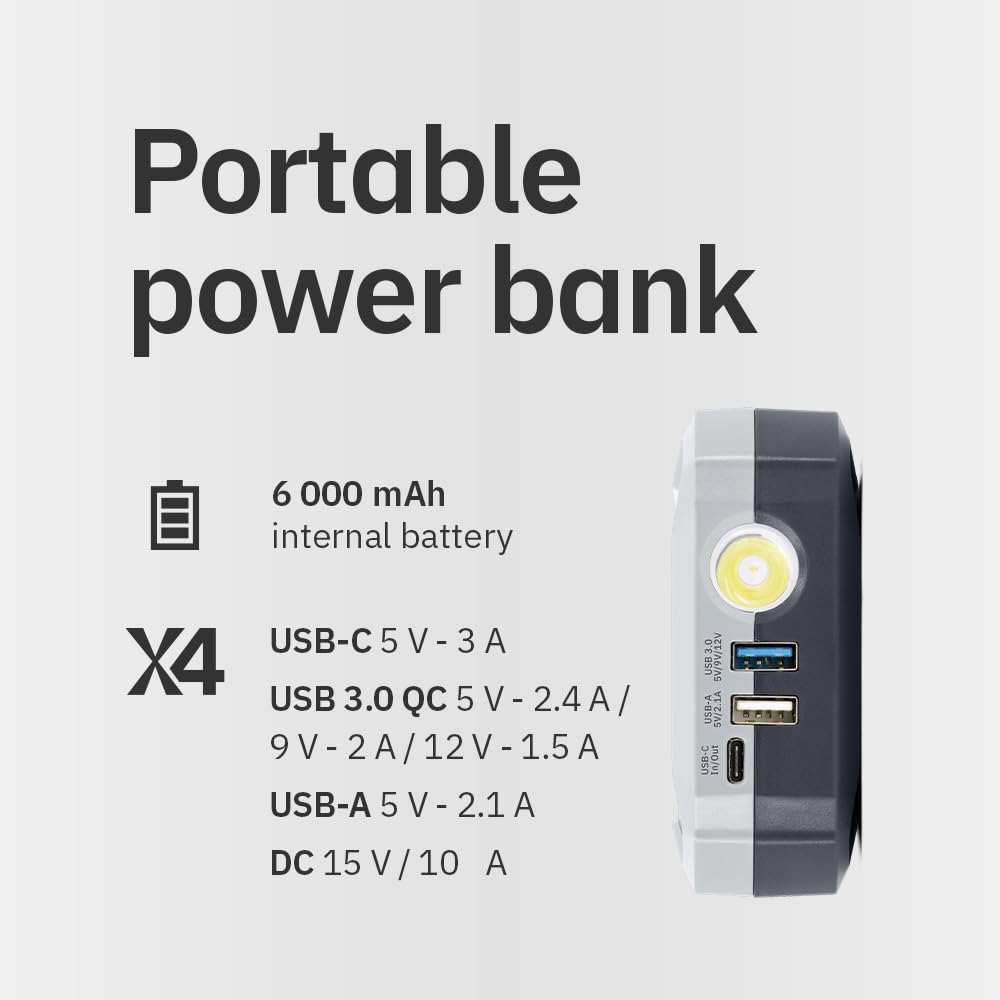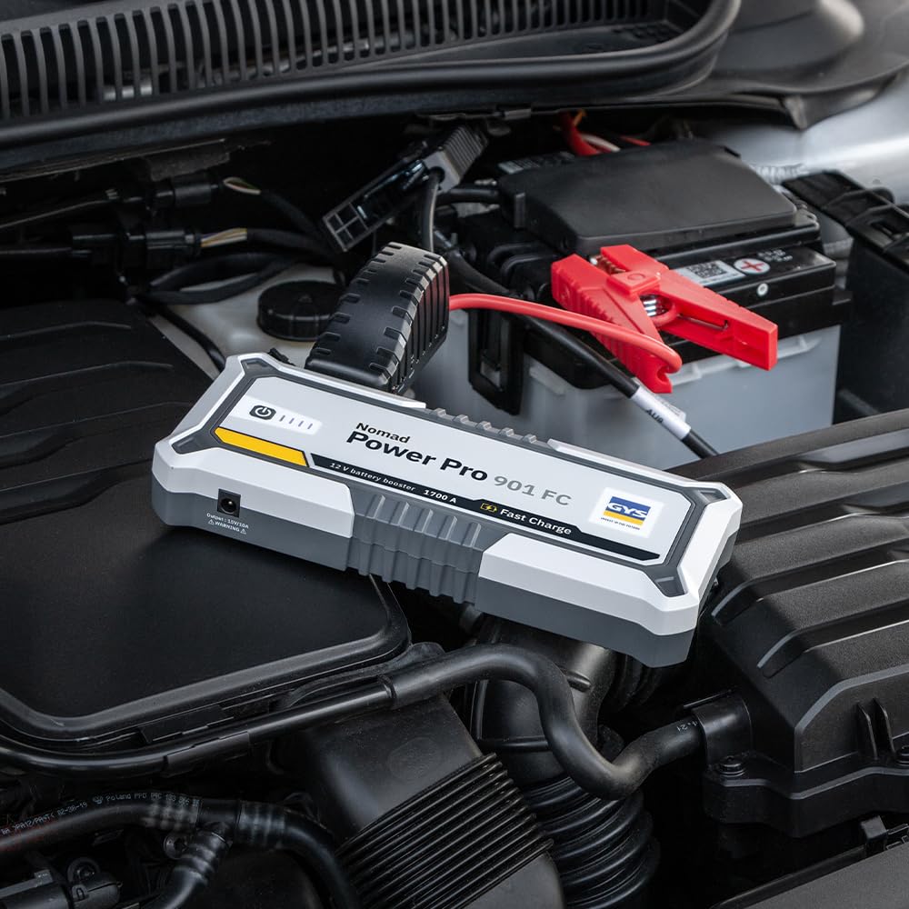 Léger (820 g) et compact, il trouvera idéalement sa place dans la boite à gants ou le vide poche du véhicule ainsi que dans un sac de voyage. Booster Lithium Voiture Moto GYS, Nomad Power 501, Démarreur/Booster Batterie Lithium Portable 1500A, Véhicules 12V (Moto, Voiture), Démarrage Sécurisé, Batterie Externe 5.25Ah (PowerBank), Lampe LED, Ecran LCD Booster Batterie Voiture Le NOMAD POWER PRO 901 FC est un bloc de puissance à base de lithium qui combine 3 fonctions : - Booster pour véhicules 12 V (voiture, SUV, utilitaire, tracteur, bateau). Démarreur instantané pour véhicules 12V (intensité de démarrage: 900 A) voiture, SUV, utilitaire, tracteur, bateau... Alimentation autonome pour des petits appareils électroniques. Lampe de secours / signalisation. Fast charge, le booster se recharge en 1h15 seulement 087132), une charge complète ne prend que 1h15, assurant ainsi une disponibilité rapide pour un nouveau démarrage. Équipé de : - 2 ports USB 5 V - 2., 1 A / 5/9/12 V - 2 A + 1 entrée/sortie USB Type C pour recharger smartphone, tablette, GPS, etc. Le NOMAD POWER PRO 901 FC est un booster lithium haute performance (92.5 Wh) combinant 3 fonctions : • Démarreur instantané pour véhicules 12 V (intensité de démarrage : 900 A) voiture, SUV, utilitaire, tracteur, bateau... Grâce à un chargeur adapté (réf. - Alimentation autonome pour tous types d’appareils électriques. Le câble de démarrage intelligent préserve à la fois la batterie et les équipements électroniques du véhicule : - Technologie anti-étincelles, - Protection contre les courts-circuits, - Protection contre l’inversion de polarités. Booster lithium 1700A NOMAD POWER PRO 901 FAST CHARGE | Leroy Merlin Il démarre les véhicules équipés de batterie 12 V déchargée (liquide, gel, AGM, Start&Stop) en quelques secondes ( ne pas démarrer de batteries Lithium LiFePO4 avec ce booster, tensions non compatibles) - Protection contre les courants de démarrage excessifs, - Protection contre les augmentations de température du booster