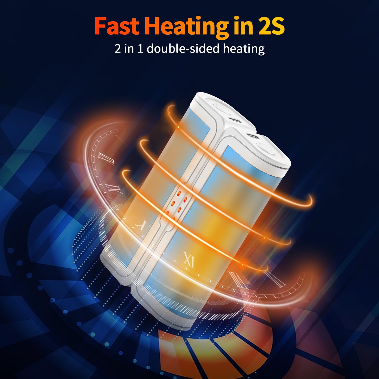 Il est facile à emporter et adapté aux déplacements. Cadeau Pratique Homme Femme Enfant Chauffe Main Rechargeable, Gabless Chauffe Mains Reutilisable, Chaufferette Main Réutilisables Chauffe Mains Rechargeable 3 Temperatures Vous pouvez choisir le niveau de chauffage qui convient à vos besoins. gabless Chauffe-Mains Rechargeable 2 Pack, Chauffe-Mains Conception de chaufferette electrique 2 en 1 : ce chaufferette reutilisable peut être divisé en deux chauferrettes main. Vous pouvez ainsi réchauffer vos deux mains en même temps. Chauffe-Mains Rechargeable,Portable Chaufferette Main Electrique Réutilisables YESMAEFR... La batterie peut prendre en charge 4 à 10 heures de chauffage par côté et garantit que vous pouvez l'utiliser pendant plusieurs heures avec une seule charge. La fonction de chauffage rapide en 3 secondes permet à vos mains de se réchauffer rapidement et de rester à l'aise par temps froid. Fonctions de sécurité : Le chaufferette rechargeable dispose de protections contre les surintensités, les surchauffes, les surtensions et les courts-circuits pour votre sécurité. Un design léger et compact le rend pratique pour les activités de plein air ou les voyages par temps froid. Chaleur durable : le chauffe main reutilisable dispose de batteries 2000mAh*2 qui vous permettent de profiter de la chaleur pendant de longues périodes. Grâce à son design léger, le chaufferette mains tient sans effort dans vos mains.