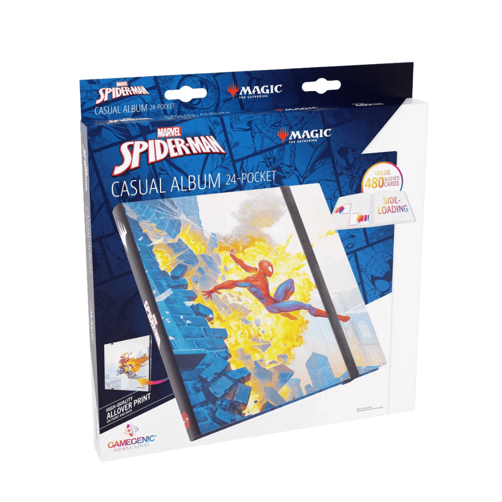 Magic Spiderman Gamegenic MTG Marvel's Spider-Man Casual Album 24 Cases 480 Cartes Album Spider-Gwen Magic GAMEGENIC - PORTFOLIO CASUAL ALBUM 18 POCHETTES - SPIDER-MAN ET Il contient 20 pages avec 18 poches à chargement latéral et offre ainsi de la place pour un total de 360 cartes (également doublées). Les pages noires et une large bande de fermeture complètent l'aspect élégant Il contient 20 pages avec 18 poches à chargement latéral et offre ainsi de la place pour un total de 360 cartes (également doublées). La bande élastique extra large avec coutures renforcées ferme l'album en toute sécurité. Magic sous licence officielle : l'œuvre d'art de Gathering du jeu L'album dispose d'une couverture colorée avec des impressions emblématiques de qualité supérieure du jeu. Contient 20 pages à chargement latéral pour jusqu'à 360 cartes à pochettes Bande de fermeture élastique extra large de qualité supérieure avec coutures renforcées Optimisé pour ranger des cartes à double pochette L'album présente une couverture colorée avec des impressions Full-Art iconiques de haute qualité tirées du jeu. Il contient 20 pages, chacune avec 18 poches Sideloader, offrant ainsi de la place pour un total de 360 cartes (même avec des protections doubles