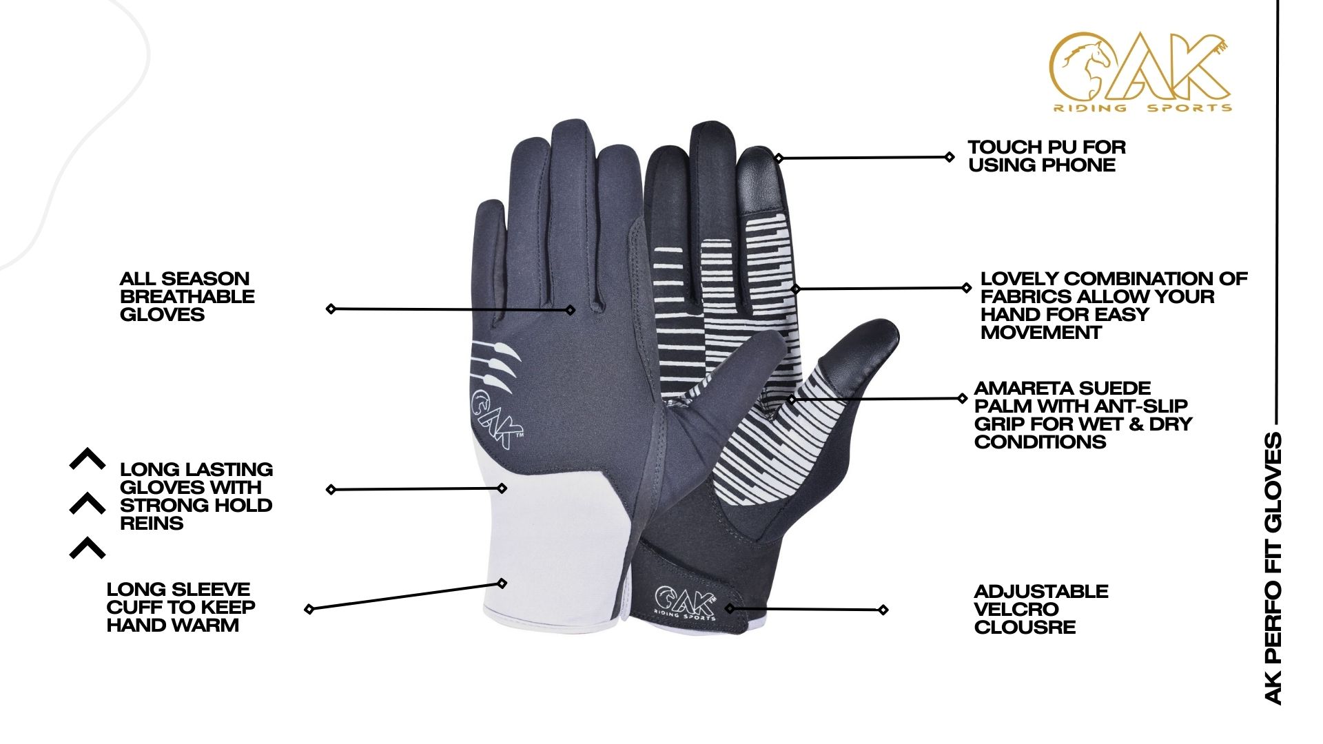 Gants Tactiles Pour Téléphone Gants D'équitation AK Equestrian Perfo Fit Amareta En Daim Gants équitation AK Equestrian Gant respirant toutes saisons AK Perfect Fit Micro Suede, gant très solide, durable et durable avec une forte tenue sur les rênes, paume en daim Amareta... Gants Saumur d'équitation de la maison CAUSSE Lavable en machine à 30 degrés. GANTS D'ÉQUITATION EN Daim Élastiques Pour Conduite Cyclisme Ski Épais Doigt > EUR 11,28... Fermeture Velcro réglable pour serrer le poignet selon les exigences de fixation, Utilisation multiple du gant pour toutes les saisons, que ce soit par temps froid, par temps tropical, par temps chaud, pour l'habillage quotidien, pour l'équitation ou en écurie, ayant des caractéristiques unisexes. Tailles disponibles : XXS à XXL, Tailles numériques : 5 à 11, Couleurs : noir/noir, noir/gris. téléphones tout en portant les gants, logo Silk Print au poignet pour un look élégant.