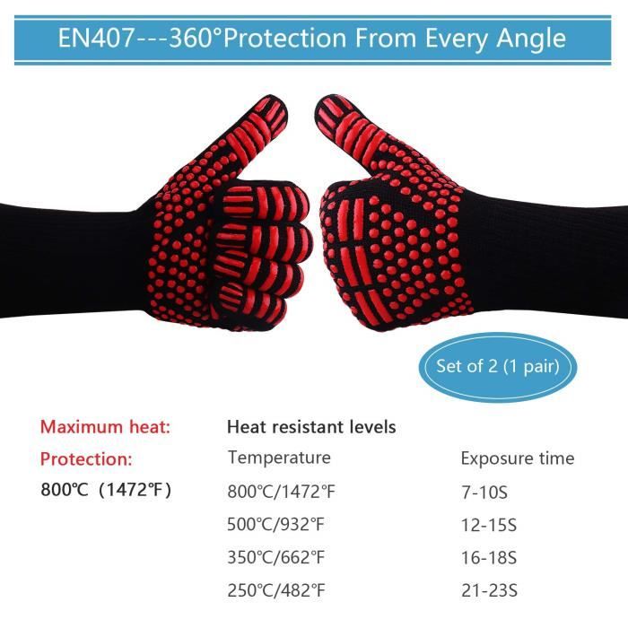 Gants de Four, Gant Cuisine Anti Chaleur Résistant, Longeur 35cm Gant... Résiste à la chaleur jusqu'à 500 °C pendant 12 à 15 secondes., Isotherme en silicone Doublure intérieure douce et respirante , Lavable en machine Manipulation Braises Chaudes Gants De Barbecue Au Meilleur Prix | Leroy Merlin Gant Barbecue Résistant Chaleur Résiste à la chaleur jusqu'à 350 °C pendant 16 à 18 secondes. Gants anti chaleur isolation thermique pour barbecue | Gant Univers Résiste à la chaleur jusqu'à 100 °C pendant 55 à 68 secondes. Gants de Grillade Résistants à la Chaleur Gants de Barbecue Chauds Gants de Cuisson Résistants à la Chaleur Gants de Soudage pour Four Gants de Cuisson Résistants à la Chaleur Gants en