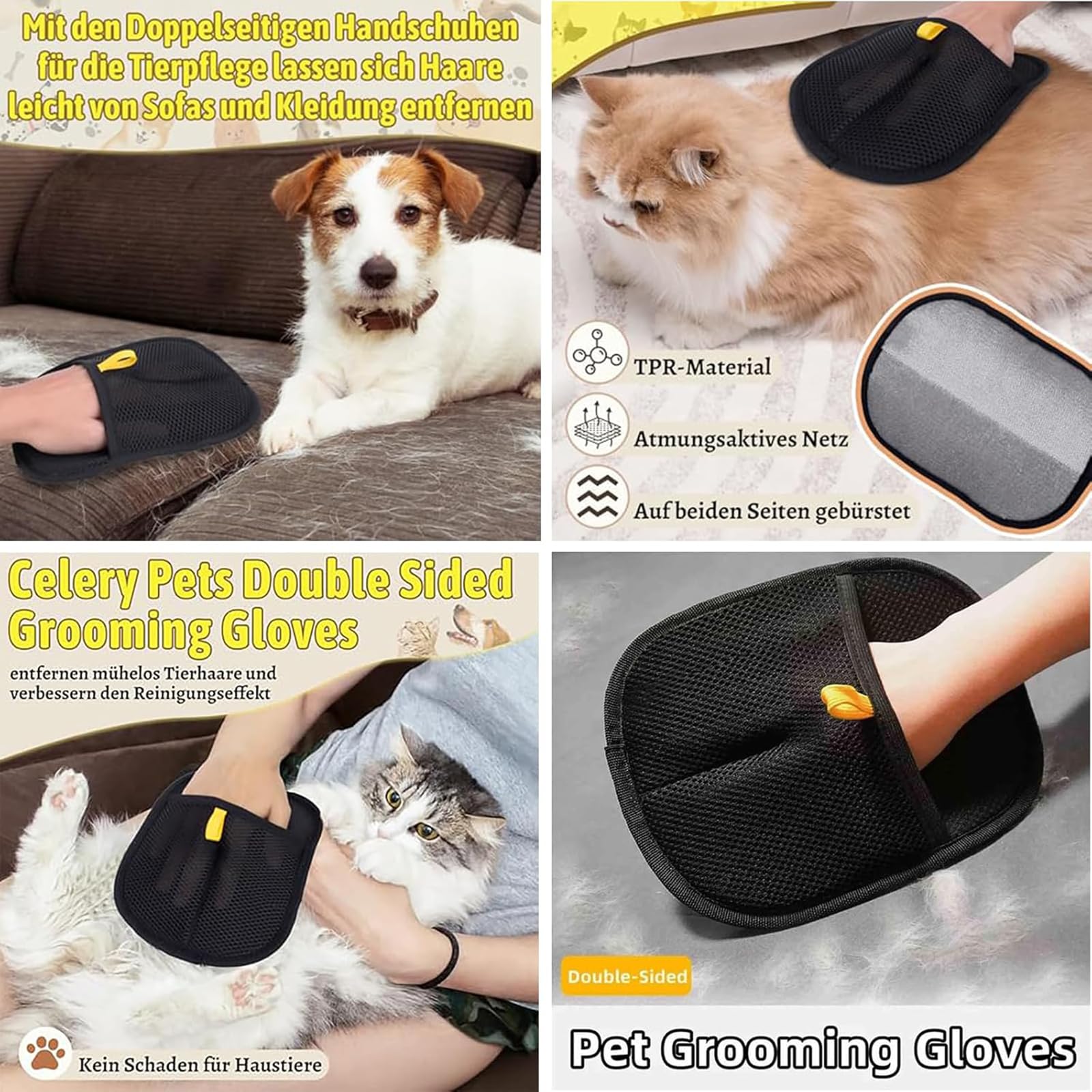 Gant Magnétique Enlever Poils Chien Gant Epilateur Pour Animaux 2 Gants De Toilettage Pour Chats & Chiens - Anti -Poils, Double Face Gant Démêlant Double Face Réutilisable WSGQLT Brosse pour Animaux de Compagnie Chien Chat Gant de toilettage Gant magnétique anti-poils d'animaux 2025 - Gant d'épilation antistatique polyvalent pour chiens et chats - Double face - Pour le lavage et l'épilation (1... Contenu : 1 gant d'épilation pour animal de compagnie. La polaire douce absorbe et élimine les poils tenaces et les poils de chat sans laisser de traces sur les vêtements. Matériaux de qualité supérieure : le tissu en maille respirante combiné avec le TPR durable assure une grande résistance et un confort optimal. Matériau : maille, chiffon de nettoyage Dimensions : 24 cm x 17,5 cm Poids : 37 g. La surface antistatique capture les peluches et est facile à nettoyer et à réutiliser. Utilisation polyvalente : ce gant pour animaux de compagnie est parfait pour nettoyer, entretenir et baigner votre animal de compagnie. Il convient non seulement aux animaux à poils courts et longs, mais peut également être utilisé comme gant pour peigner les poils mouillés et secs, mais aussi pour essuyer les vêtements, nettoyer la literie, le canapé, le tapis et garder un environnement de vie propre et bien rangé. Product Name: 2025 Upgrade Efficient Pet Grooming Hair Removal Gloves (for pet hair, furniture, carpets, car seats) Product Description: [Premium Quality Material]Crafted from soft and skin-friendly material, these electrostatic pet hair removal gloves deliver a soothing experience while effectively lifting away hair. The gentle fabric massages your pet during grooming and adheres to loose...