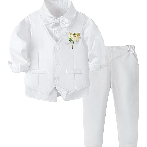 Costumes Bébé Garçon Costume 3 Pièces Avec Gilet Pour Vos Cérémonies Ou Occasion Formelle Costumes Garçon Ensemble 4 pièces pour garçon : transformez votre petit garçon en un gentleman élégant avec cet ensemble complet de 4 pièces Comprend une chemise blanche impeccable, un gilet boutonné sur le devant, un pantalon parfaitement assorti et un nœud papillon réglable pour un look gentleman parfait Vêtement Cérémonie Baptême Bébé Chic Ensemble De Costume Formel Pour Petit Garçon Avec Gilet, Pantalon, Chemise Et Nœud Papillon, Tenue De Mariage 4 Pièces Pour Bébé Garçon, Rose Chemise Gilet Pantalon Nœud Papillon Tissus de qualité supérieure : fabriqués à partir de coton de qualité supérieure, nos ensembles de gilets pour bébé garçon sont incroyablement doux, légers et respirants, doux pour la peau délicate et conçus pour un confort tout au long de la journée. Design formel : chemise blanche classique avec pantalon, nœud papillon de couleur assortie et gilet entièrement doublé doux. Yaopelky Ensemble De Costume Formel Pour Bébé Garçon Avec Gilet Et Design formel : habillez votre petit gentleman avec style. Fabriqué à partir d'un coton... Laissez votre tout-petit rester au chaud et bouger librement tout en étant adorable Chaque pièce peut également être mélangée et assortie à d'autres pièces de votre placard pour une variété d'options de style. Tailles disponibles : 5 tailles différentes de gilet gentleman pour garçons sont suffisantes pour répondre aux besoins de port des garçons de 12 mois à 5 ans, vêtements pour bébé garçon de 12 à 18 mois, tenues de mariage pour garçon de 18 à 24 mois, gilet formel pour enfant de 2 à 3 ans, ensemble de pantalons pour enfants 4T, tenue de remise de diplôme pour garçons 5T. Occasions polyvalentes : habillez votre petit gentleman pour impressionner Cet ensemble de gilet classique est parfait pour les occasions spéciales : mariages, baptêmes, concours de beauté, fêtes, église, cocktails ou anniversaires et plus encore.