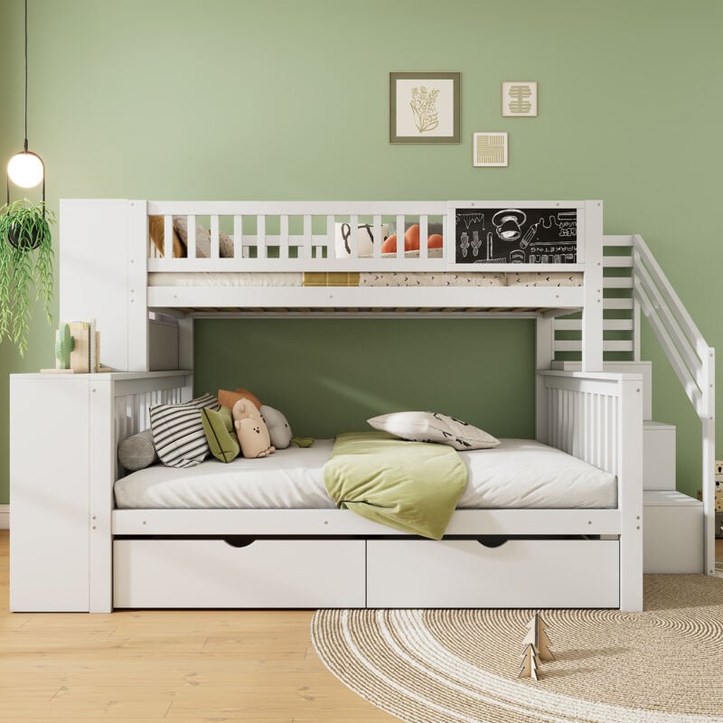 Lit Superposé 90x190 Avec Rangements Lit Superposé Blanc 90x200cm Avec Bureau, Garde-Robe Et Espaces De Rangement Intégrés - Sécurité Lit Enfant Garde-robe Tiroirs Lit Superposé Blanc 90x200cm Avec Bureau, Garde-Robe Et Espaces De Rangement Integres Securite Renforcee Certification En747 97673428 Le lit superposé le plus complet est arrivé. Avec des garde-corps de chaque côté, en bas et en haut. La beauté d'un lit superposé de chalet, mais avec la sécurité d'avoir tout couvert. De plus, vous pouvez utiliser le fond pour le rangement ou comme lit supplémentaire.Les fenêtres et le toit peuvent être modifiés latéralement.Dimensions : 233,3x201x97 cm (hauteur x largeur x... Note 2: il est normal que nos images et les choses réelles puissent avoir une certaine différence de couleur en raison de l'action de la lumière et de l'ombre. Espaces de rangement illimités:3 casiers à porte coulissante sous le lit + 2 tiroirs dans l'escalier. Stockez facilement les livres, les jouets et les accessoires de bureau de vos enfants, pour un ordre parfait dans la chambre ! détail produit Dimensions totales: 204,5x95,5x190,5 cm Poids total: 79 kg Distance entre les deux lits: 63,5 cm Matelas adapté (matelas non inclus): 90x200 & 90 * 190 cm (épaisseur du matelas ≤ 15 cm) Durabilité: lit: 136kg tiroir: 15kg Nom du produit: lits faits haut et bas Couleur: blanc + naturel Matériau du cadre: pin + MDF + bois dur Barre: Bois Méthode d'assemblage: auto - installation La structure de gauche à droite est - elle interchangeable: Non Numéro de colis: 3 Note 1: ce produit contient 3 paquets, normalement vous recevez 3 paquets à différents moments, s'il vous plaît soyez patient. Les détails réalistes créent une atmosphère ludique et chaleureuse pour vos petits. Retirez-les facilement sous le lit lorsqu'elles ne sont plus utilisées, pour gagner de l'espace dans la chambre. Laissez libre cours à l'imagination de vos enfants : ils pourront peindre, écrire et exprimer leur créativité à tout moment ! Pratique et optimisé, il vous permettra d'offrir un espace à coucher à tous vos enfants en minimisant la perte de place. Allant de 1 à 3 places, le lit superposé est le meuble idéal pour les familles qui disposent de peu d'espace