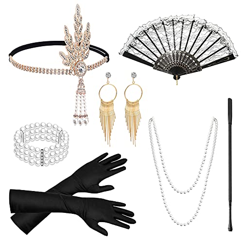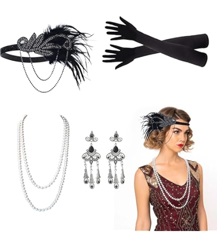 1920 Accessoires Set Roaring Great Gatsby 20 Thème Parti BABEYOND 1920s Abito con Frange e Paillettes Il Grande Gatsby Vestiti Donna Anni '20 Collier Perles Années 20 7PCS Accessori Anni 20 Donna - Set Great Gatsby, Charleston Per Festa In Costume D'Epoca Déguisement Halloween élégant Cet ensemble complet d'accessoires photo est parfait., 2., Ce serre-tête floral vintage convient à la plupart des adolescentes et des adultes et complète parfaitement votre look de pin-up des années 20., Les élégantes boucles d'oreilles et le collier de perles scintillantes vous offrent un look magnifique et accrocheur. 【Gants extensibles à Doigts Longs】Élégants gants longs en satin en élasthanne extensible, très élastiques et confortables, ils mettent en valeur votre silhouette et votre élégance, et vous permettent de vous démarquer lors de toutes vos soirées. Hai una festa a tema anni '20, un matrimonio in stile Great Gatsby o semplicemente ami il look flapper girl? Questo set di accessori WICKED FUN è perfetto Caractéristiques Marque : TOPBELIEF Matière des gants : Spandex Matière du serre-tête : Plastique et plumes Matière de la cape : Polyester Couleur : Multicolore Contenu de l'emballage : 1 x Gant 1 x Serre-tête 1 x Collier 1 x Boucle d'oreilles 1 x Bracelet 1 x Petit bâton 1 x Cape 【Serre-tête à Plumes et Fleurs】Ce serre-tête style années 1920, orné de plumes et de fleurs, crée un look rétro élégant. 【Costume des Années 1920】Notre ensemble Années folles comprend 1 paire de mitaines noires, 1 cape, 1 serre-tête, 1 paire de boucles d'oreilles, 1 collier de perles, 1 bracelet de perles et 1 accessoire pour les mains. Grâce à son élastique, il convient à la plupart des personnes.