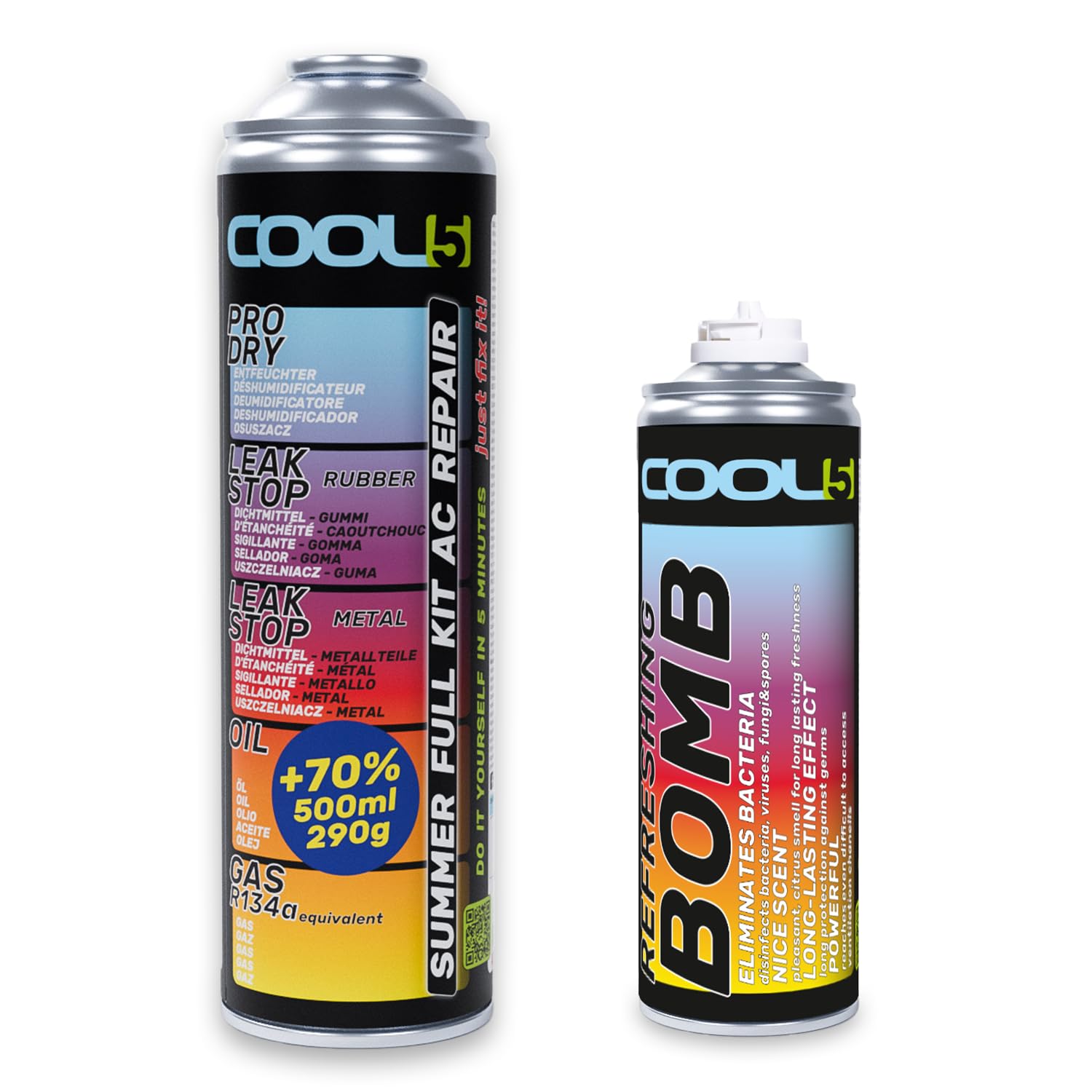 Bouteille Climatisation Voiture FREEZEECO Kit De Recharge De Climatisation De Voiture De Remplacement Avec Clapet Anti-Retour Intégré, 235 G, 40% D'efficacité De Refroidissement Recharge Gaz R134a En outre, le colorant UV facilite le diagnostic et améliore le confort. Substitut écologique R134a ClimaSet Remplacement Du Gaz Refrigerant R134a 2x235 G Pour Climatisation Avec Tuyau, Manomètre Et Adaptateur HP/LP Pour Climatisation -Recharge Recharge Climatisation Auto R134a Idéal pour les véhicules avec réfrigérant R134a (1995-2016). Tableau coparatif des quantités de gaz de cliatisation R134a pour... COOL5 recharge gaz de remplacement r134a, réfrigérant de remplacement r134a pour climatisation automobile - 5 boîtes 2en1, 290 g APC 500ml : : Auto et MotoÀ propos de cet article Un service de climatisation rapide : Avec COOL5 Self-Refill, vous rechargez facilement le gaz R134a sans outils ni passage en atelier, en seulement 5 minutes ! Idéal pour les voitures équipées du gaz... ✅ Contenu de la boîte : 235 g d'un mélange révolutionnaire enrichi en huiles synthétiques. ✅ Tuyau multifonctionnel avec manomètre : le kit comprend un tuyau avec manomètre pour vérifier et remplir facilement la climatisation. Le substitut du réfrigérant R134a est sans danger pour l'environnement et l'utilisateur, assurant refroidissement et confort dans toutes les conditions. z Vidéo de marchand Réutilisable : utile pour les saisons suivantes. 1 étape 2 étape 3 étape 4 étape 5 étape