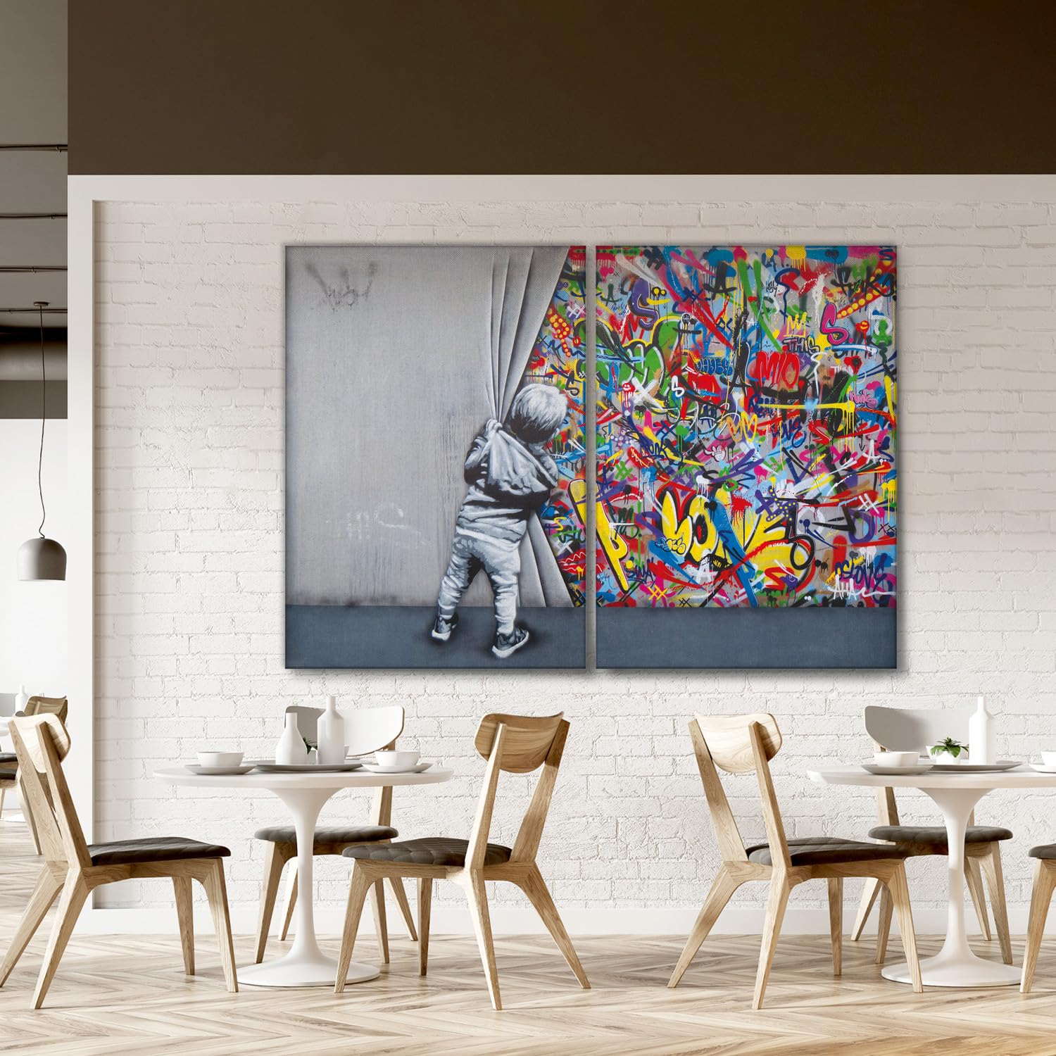 Décoration Murale Salon Giallobus - Peintures Grand Format XXL - Banksy Idéal Salon Bureau Rideau Occultant - Cercle d'or Abstrait - Isolant Thermique et... Giallobus - Ensemble de 10 peintures Multi-Panneaux - Vassily Kandinsky L'image s'étend également jusqu'aux bords du cadre, créant un effet 3D agréable ; Rideau Occultant - Ville Thermique - Bord de mer - 100x140cm x 2pcs... IMPRESSION: haute résolution sur toile avec des encres super brillantes et inodores qui ne se fanent pas avec le temps; tous nos produits sont non toxiques et peuvent également être utilisés dans la chambre et la chambre des enfants; Composition 3 tableaux 70x100cm (taille totale 218x100cm) | 3 tableaux 100x140cm (taille totale 308x140cm). Pour une composition optimale les panneaux doivent être espacés de 4 cm les uns des autres. La grande taille des peintures attire l’attention par leur beauté et leur qualité.