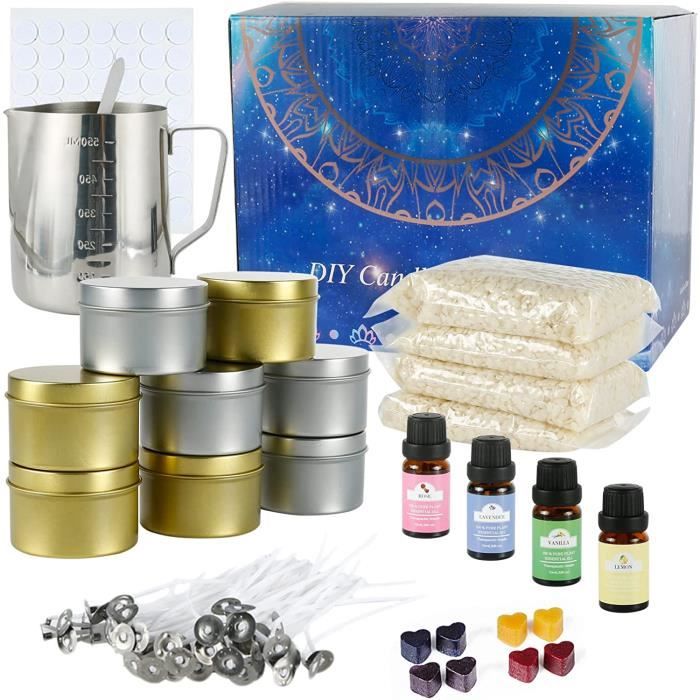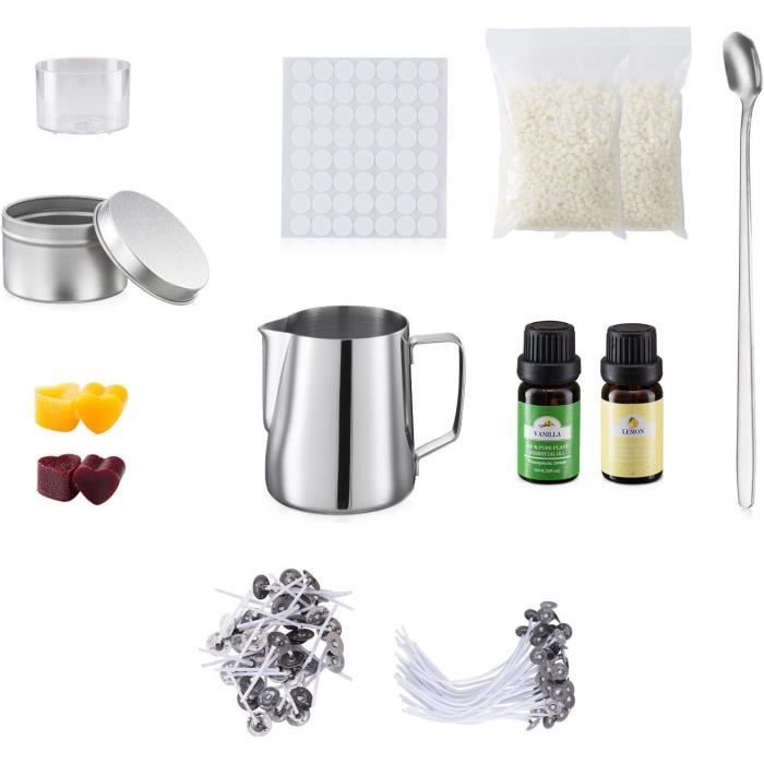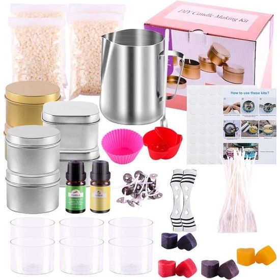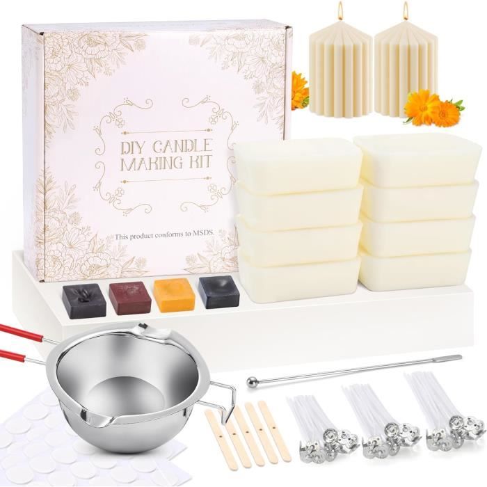 Kits Fabrication Bougies - A286 - Cire d'abeille - Cire de soja - Acier inoxydable - DIY facile ENSEMBLE COMPLET] Tout ce dont vous avez besoin pour créer vos propres bougies se trouve dans ce kit Cadeau Créatif Adulte Débutant GiftPot Kit De Fabrication De Bougies De Cire Bricolage Parfumées,Coffret Cadeau De Bougies Parfumées Bricolage,Huile Parfumée, Colorants ,cire D'abeille Kit Créatif Bougie Parfumée 【ENSEMBLE COMPLET】 Tout ce dont vous avez besoin pour créer vos propres bougies se trouve dans ce kit: 4 flocons de cire d'abeille de 120 g, 4 huiles de parfum, 4 colorants pour bougies, 1 x pichet, 8 x boîtes, 50 x mèches, 56 x autocollants, 1 x cuillère, 2 x bougeoirs,1 xMoule à roses, 1 x moule conique en silicone (Rockery) 【PROFITEZ DES FRANGRANCES DE BRICOLAGE】Les huiles essentielles ne sont pas incluses. Points forts : 4 flocons de cire d'abeille,4 huiles de parfum,4 colorants pour bougies,1 pichet,8 boîtes,50 mèches,56 autocollants,1 cu; Couleur(s) : C2... 【Flocons de cire d'abeille NATURELS】 Fabriqué à partir de cire d'abeille 100% naturelle, brûle plus propre, sans fumée noire, plus lentement et plus uniformément. 【FACILE À FAIRE】 Parfait pour les débutants. Un choix de cadeau idéal pour les adultes,c'est plus qu'un simple cadeau, vous en faites un passe-temps romantique. 【CADEAU IDÉAL】Notre kit de bougie de bricolage est fait de matériaux de haute qualité et est emballé dans une belle boîte.