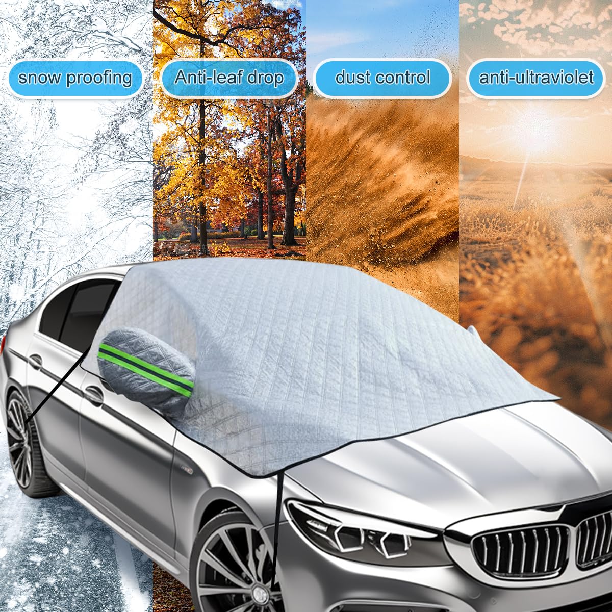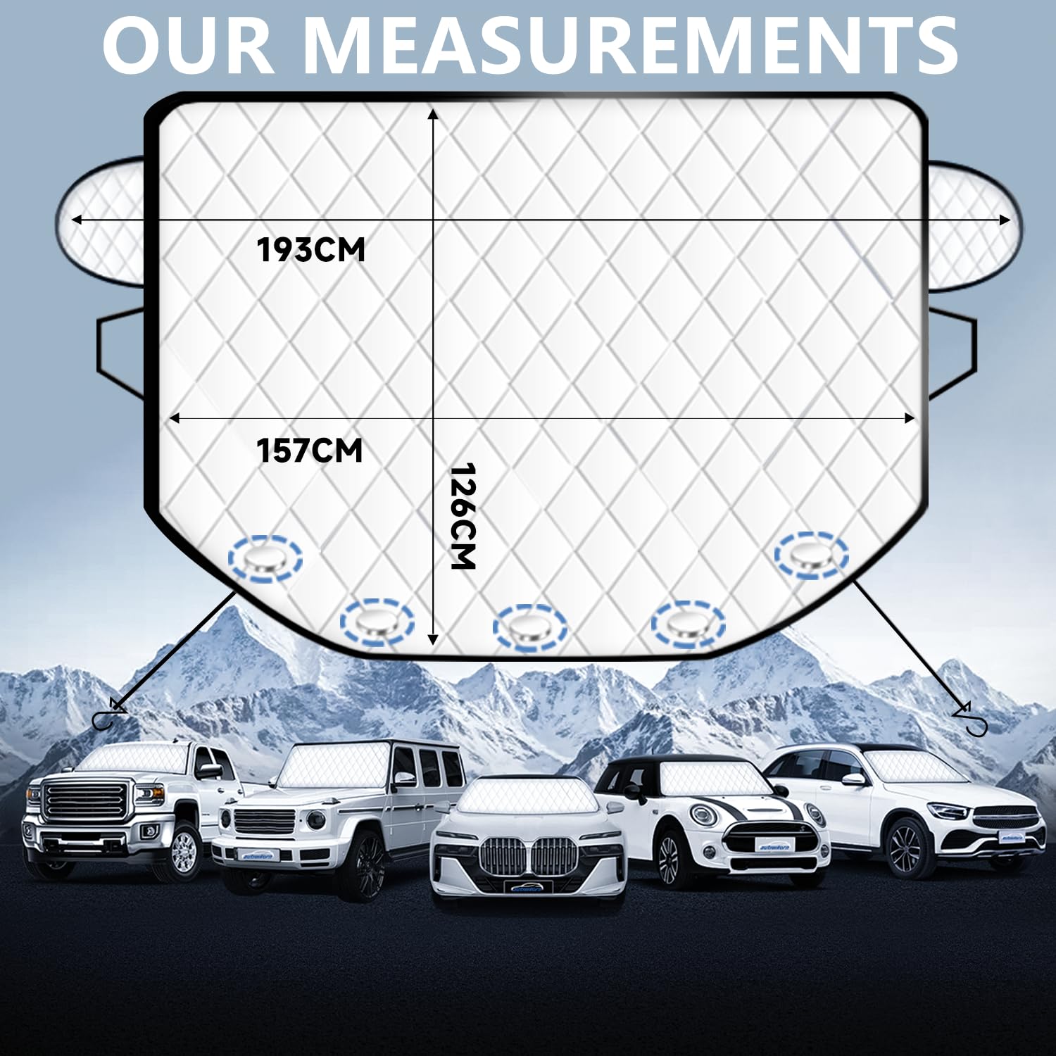 Protection pour pare-brise d'hiver : Ce pare-soleil pour voiture est conçu pour une utilisation toute l'année. Spécialement conçue comme protection gel pare brise efficace, elle résiste à des températures extrêmes jusqu'à -50°C. Est-ce facile à installer ? Une personne seule peut le faire ? Dépliez, posez sur le pare-brise : les 5 aimants s'alignent automatiquement sur la bordure métallique (pas sur la vitre), fixez les sangles aux rétroviseurs. Une fois pliée, elle prend très peu d’espace dans le coffre ou sous un siège. Aucun outil nécessaire – terminé en 1 minute chrono ! DNWFZ Anti Givre Pare Brise Bache Anti Givre Protégé Pare... Placez la protection sur le pare-brise et fixez-la en fermant les portes. Comment la ranger ? Prend-elle beaucoup de place ? Non, elle se plie facilement et est livrée avec un sac de rangement portable. Description du produit Autreykorn Protege pare Brise Givre Accessoire Hiver Gain De Temps Déneigement Protection Hiver été Voiture Couverture Pare-Brise Universelle - Protection Anti-Givre, Neige Et UV - Taille L 179x122cm - Pour Voitures Et SUV Couverture Blindage Voiture Hiver Couverture Pare Brise Voiture Hiver La housse de protection Autreykorn préserve efficacement votre véhicule du givre, de la chaleur et de la saleté. Dotée d'un matériau imperméable et d'une... Elle convient à la plupart des modèles de voitures particulières et SUV, protégeant votre véhicule des intempéries hivernales. Ce matériau, très épais et doté d'une couche aluminisée, est résistant à la déchirure, aux hautes températures, tout en étant robuste et durable. Matériau ultra-épais à 4 couches : La protection est fabriquée en un composite à 4 couches (PE aluminisé + feutre + ouate de soie + non-tissé innovant). Sac de transport inclus : Livrée avec un sac de rangement pratique pour un transport et un stockage aisés, sans encombrement. Protection Pare Brise - QINGQUE - Universelle - 4 Couches - Design Magnétique - 148x116 cm Taille universelle : La protection mesure 157 x 126 cm (dimension principale), pour une longueur totale de 193 x 126 cm. Les 5 aimants assurent une adhérence principale, tandis que les sangles latérales attachées aux rétroviseurs offrent une stabilité supplémentaire, même par vent violent. Ils ne entrent jamais en contact direct avec la peinture de votre véhicule. Résiste-t-elle au vent fort ? Oui, grâce au système de fixation double aimants + sangles.