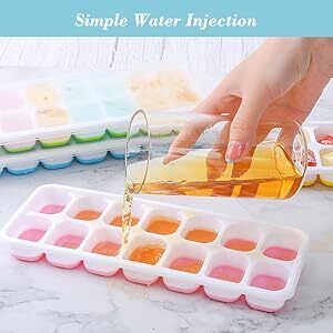 Bac À Glaçons En Silicone-Bacs À Glaçons Pour Congélateur Avec Ensemble de 4 avec 4 Couvercles: Cet ensemble de 4 moules à glaçons permet de produire un total de 56 glaçons à la fois. Les couvercles garantissent que les glaçons restent propres et ne prennent pas les odeurs du congélateur Bac Glaçons Qualité Alimentaire Certifié LFGB Sécurité Lot De 4 Bacs à Glaçons En Silicone Avec Couverclee,Glacons Moule Moule Glaçons Flexible Facile Démoulage Bleu Orange 🍹【Dimensions idéales】 Chaque bac à glaçons mesure 9,5*23 cm avec 12 compartiments, offrant une taille parfaite pour fabriquer des glaçons de bonne taille. Vous pouvez les utiliser en toute confiance pour des glaçons sains et sans odeur. Lot de 4 (2 bleus, 2 verts), chaque moule fait 14 glaçons (27ml chacun), donc 56 au total. Avec couvercle pour éviter les odeurs. En silicone alimentaire sans... 💧【Matériau de qualité alimentaire】 Fabriqués en silicone de qualité alimentaire, ces bacs à glaçons sont non seulement résistants et flexibles, mais aussi sûrs pour une utilisation alimentaire. 🌟【Facilité d’utilisation】 Grâce à leur silicone flexible, ces bacs à glaçons permettent de retirer facilement les glaçons sans les casser. Offrez-les à vos proches pour ajouter une touche de fun et de praticité à leur cuisine et à leurs moments de détente ! Leur conception ingénieuse vous garantit une utilisation simple et rapide, idéale pour les soirées et les repas.