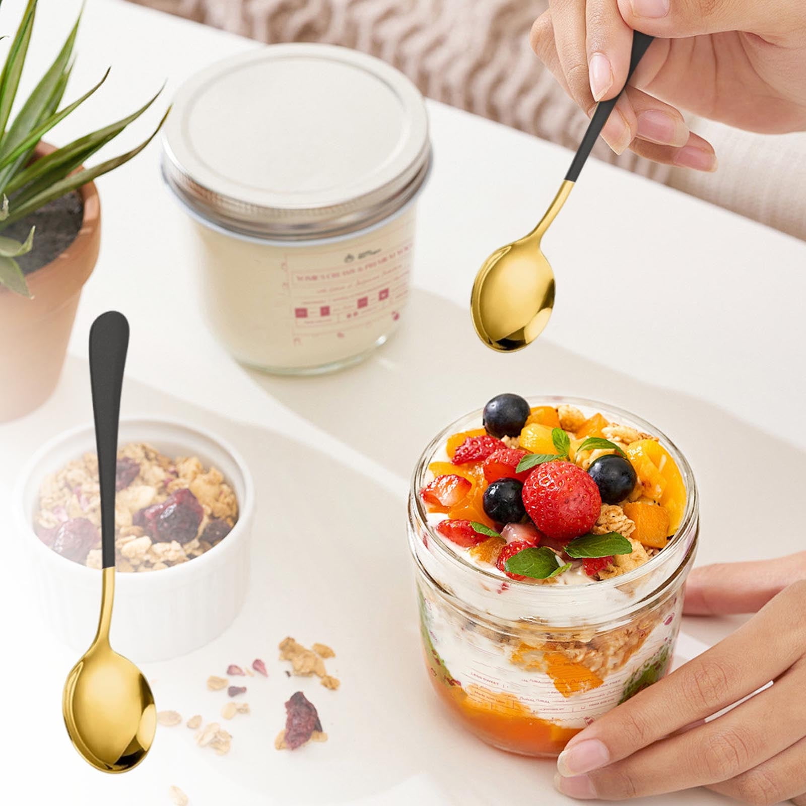 Cuillère coréenne moderne en acier inoxydable à tête ronde, manche Son design proportionné est parfait pour servir ou savourer une soupe copieuse à la maison ou pour ramasser du sucre pour votre rituel de café du matin. Cuillère Dorée Pour Cire à Cacheter Cuillère à Glace En Acier Inoxydable Cuillères à Servir Pelle à Glace Cuillère Ergonomique Pour Droitiers 150 g / 5,3 oz Liste des paquets : 1 x cuillère Remarque : Veuillez noter que ce produit sera envoyé au hasard et assurez-vous que cela ne vous dérangera pas avant de commander. Matériau : acier inoxydable. Couleurs : bule. Quantité : 4 pièces. Forme : pointe 4. Remarque : ne pas laisser les couverts s'écouler dans le lave-vaisselle... Cuillère en forme de c&oelig ur à long manche en inox doré Matière : Acier inoxydable, robuste et résistant à la corrosion Dimensions : Hauteur 19 cm... C'est l'ustensile parfait pour l'apprenant qui prépare son premier repas fait maison ou pour un chef qui mélange savamment une sauce gastronomique. Matériau de qualité : fabriquée avec un matériau de qualité supérieure, notre cuillère est conçue pour être robuste et durable. Polyvalente pour plusieurs occasions : avec un design qui s'adapte sans effort à n'importe quel environnement, notre cuillère répond à une variété de besoins en matière de restauration. Spécification : Type d'article : Cuillère Matériau : Acier inoxydable Poids : env. C'est l'outil idéal à utiliser pour apprendre à votre tout-petit à s'auto-alimenter ou pour garantir que les utilisateurs plus âgés peuvent profiter de leurs repas en toute simplicité. Fonction : 1., Conception ergonomique : la cuillère à soupe en acier inoxydable adopte un design ergonomique très facile à tenir., 2., Applications larges: convient pour le scellage de cadeaux, les projets d'artisanat, les emballages scellés de vin, de thé ou de cosmétiques.