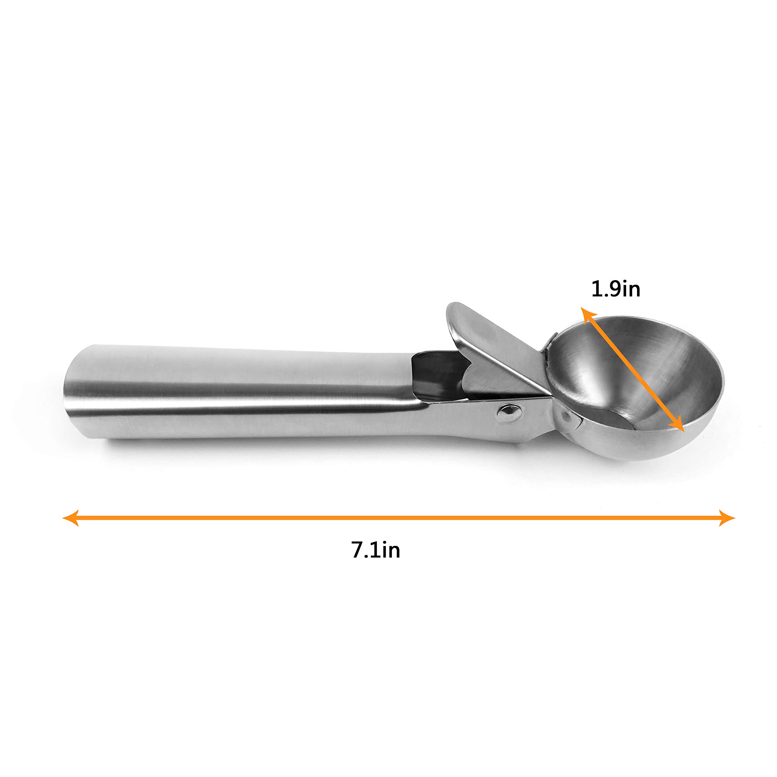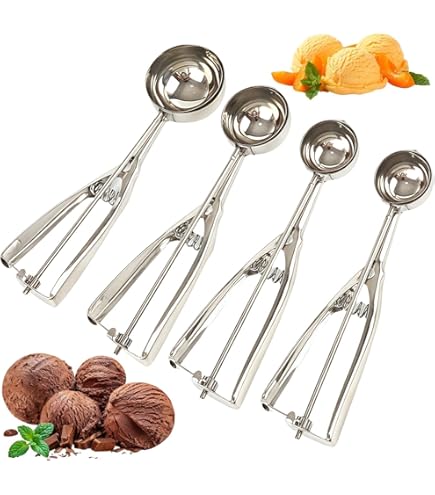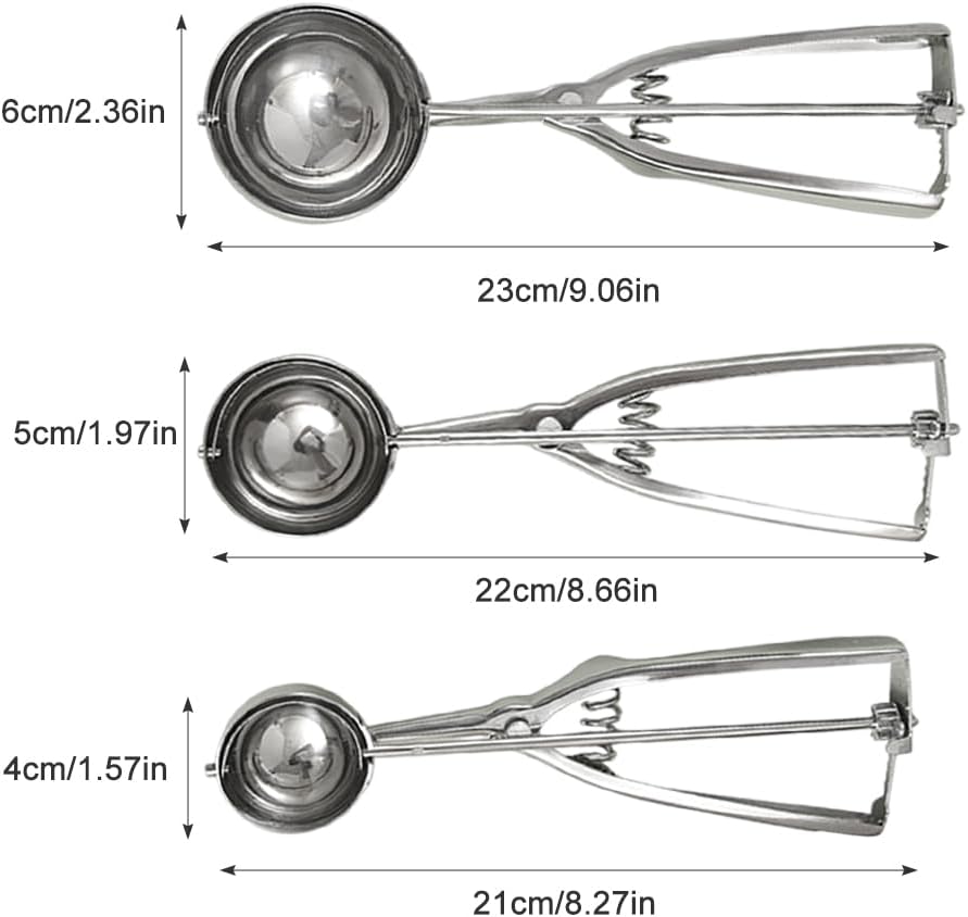 Cuillère à Crème Glacée Lot De 3 Cuillères à Glace En Acier Inoxydable - Différentes Lot 3 Cuillères à Glace Différentes Tailles HENDI cuillères en Bois de Tailles Différentes - Lot de 3 Ensemble de cuillères à glace facile à utiliser] : Ensemble de cuillères à glace au design ergonomique, efficace et pratique. Grâce à son système de gâchette à ressort, la cuillère à pâte à biscuits soulage parfaitement la pression sur le poignet et la main, et permet de libérer facilement la pâte à biscuits sans effort La cuillère à glace en acier inoxydable a été soigneusement conçue pour extraire facilement même la glace plus dure. Spécifications: Matériau : acier inoxydable., Couleur : blanc, gris-violet. Diamètre intérieur : 78 mm, 63 mm, 40 mm. Lot de 3 cuillères à glace de différentes tailles, grandes cuillères à glace, en acier inoxydable, avec déclencheur La cuillère à glace dispose d'une surface lisse sur laquelle les aliments ne collent pas facilement. Design ergonomique pour une préparation sans effort : cuillère à glace ronde avec poignée robuste glisse facilement à travers la glace dure et les aliments congelés, sans trop d'effort, idéale pour une utilisation professionnelle et personnelle. Facile à nettoyer et à ranger : notre cuillère à glace dispose d'une surface lisse sur laquelle les aliments ne collent pas facilement, ce qui la rend facile à nettoyer à la main ou au lave-vaisselle Avec son dispositif de lancement unique, vous pouvez facilement extraire des boules de glace parfaites en appuyant doucement. Chaque set comprend trois tailles différentes : 3cm, 4cm et 5cm de diamètre. Comme ça, vous avez la taille parfaite pour chaque usage ! La petite pour les...