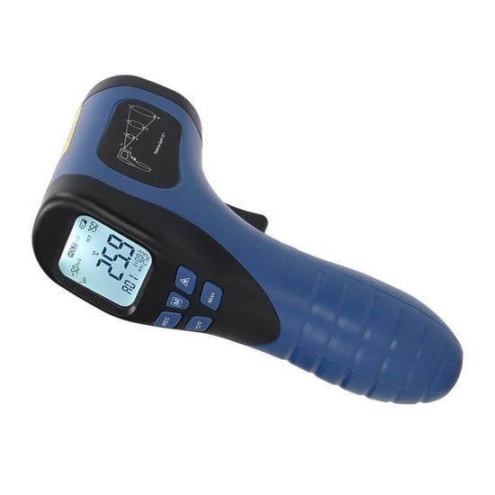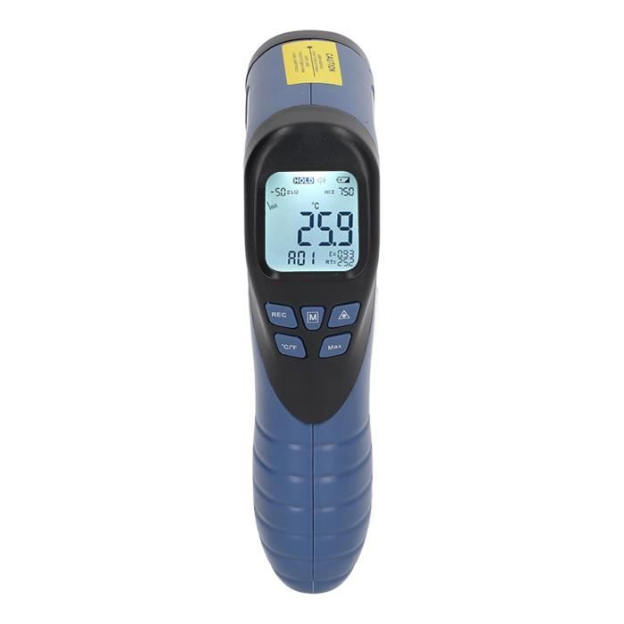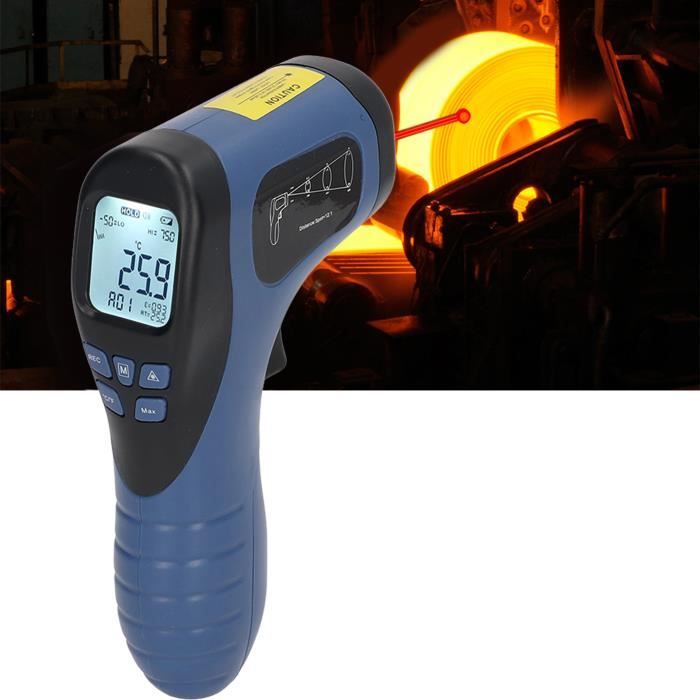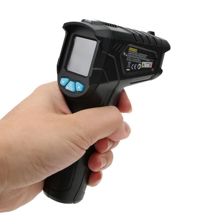 Zerone Pistolet thermomètre laser Thermomètre industriel -50° à 750°C Thermomètre Numérique MSA Thermomètre Industriel Gm550 Industriel Lcd Thermomètre écran Rétroéclairé Grand écran LCD : Écran LCD 3,5 digits (jusqu'à 1 999) pour une lecture facile. Utilisation sécurisée : Boîtier robuste étanche à la poussière et à l'humidité... Spécification:Type d'article: thermomètreMatériau: ABSPlage de température: -50℃ à 750℃Précision: ±1,5% ou ±1,5℃ Résolution: 0,1°C ou 0,1°FRépétabilité: 1% de la lecture ou 1°CTemps de réponse: 500ms, 95% de réponseRéponse spectrale: 8 à 14um Émissivité: 0,95 prédéfinie (réglable)Rapport distance/point: 12:1Température de fonctionnement: 0 à 50°C (32 à 122°F)Humidité de fonctionnement: 10 à 90% HR Température de stockage: -10 à 60℃ (14 à 140℉)Humidité de stockage: 10 à 75% HRAlimentation: 330mah G6F22 Carbon 9V Battery x 1 (Livré avec la batterie correspondante) Caractéristique:Grande plage de mesureFonction marche, arrêtLCD avec rétroéclairage blanc et affichage graphique à barresCelsius et Fahrenheit commutableAlarme haute et basse température ParamètresArrêt automatiqueEnregistrement des données (30 maximum) et fonction de maintien des donnéesÉmissivité réglableMesure de la température ambianteFonction de lecture MAXIMUM, MIN, AVG, DIF /Indicateur de batterie faibleMini design portable élégantListe des colis:1 xthermomètre 1 x batterie 1 x boîte de rangement1 x manuel Remarque:1., Soyez très prudent lorsque vous ouvrez l'outil., 2., Ne laissez pas le faisceau lumineux entrer dans vos yeux, les yeux des autres et les yeux des animaux., 3., Veillez à ne pas laisser le faisceau sur l'aspect réfléchissant vous heurter les yeux., 4., Ne laissez pas le faisceau toucher un gaz potentiellement explosif. Thermomètre Infrarouge Industriel FDIT - Mesure Stable et Précise... Facile à lire : équipé d'un écran LCD rétroéclairé et d'un affichage graphique à barres, il est facile de lire les données pendant le fonctionnement, et l'écran LCD rétroéclairé peut être utilisé même en plein . Précision de ± 1,5 % : ce thermomètre infrarouge est conçu avec la dernière technologie de capteur thermopile, avec une précision de ± 1,5 %.