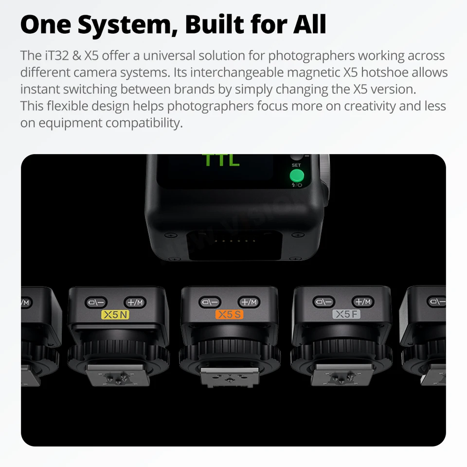 Godox X5F X5-F X5 F para cámaras Fujifilm Fuji para Flash de eilleurs flashs pour appareils photo Fuji Accessoire Flash Magnétique IT32 Système Sans Fil 2.4GHz Godox X5F X5-F X5 F Pour Appareils Photo Fujifilm Fuji Pour V100 Accessories Le Flash iT32 n'est PAS INCLUS. Lorsqu'il est attaché à l'iT32, il fonctionne comme une griffe pour la prise de vue sur caméra ;une fois détaché, il passe automatiquement en mode déclenchement, contrôlant sans fil l'iT32 ou d'autres flashs du système Godox Wireless X. GODOX X5 F X5F X5-F 2,4 G TTL Déclencheur de flash sans fil pour appareil photo iT32, pour appareil photo Fuji Fujifilm Flash Speedlite, batterie au lithium... Compact mais puissant, l'iT32 &Le X5 combine modularité magnétique, compatibilité entre marques et intégration sans fil Godox 2,4 GHz, permettant aux photographes de façonner la lumière sans effort, à tout moment et n'importe où. [REMARQUE] Le flash iT32 n'est PAS INCLUS. Compacts mais puissants, les iT32 et X5 combinent modularité magnétique, compatibilité entre marques et intégration sans fil Godox 2,4 GHz, permettant aux photographes de façonner la lumière sans effort, à tout moment et en tout lieu. Godox X5-F est destiné aux appareils photo Fujifilm.