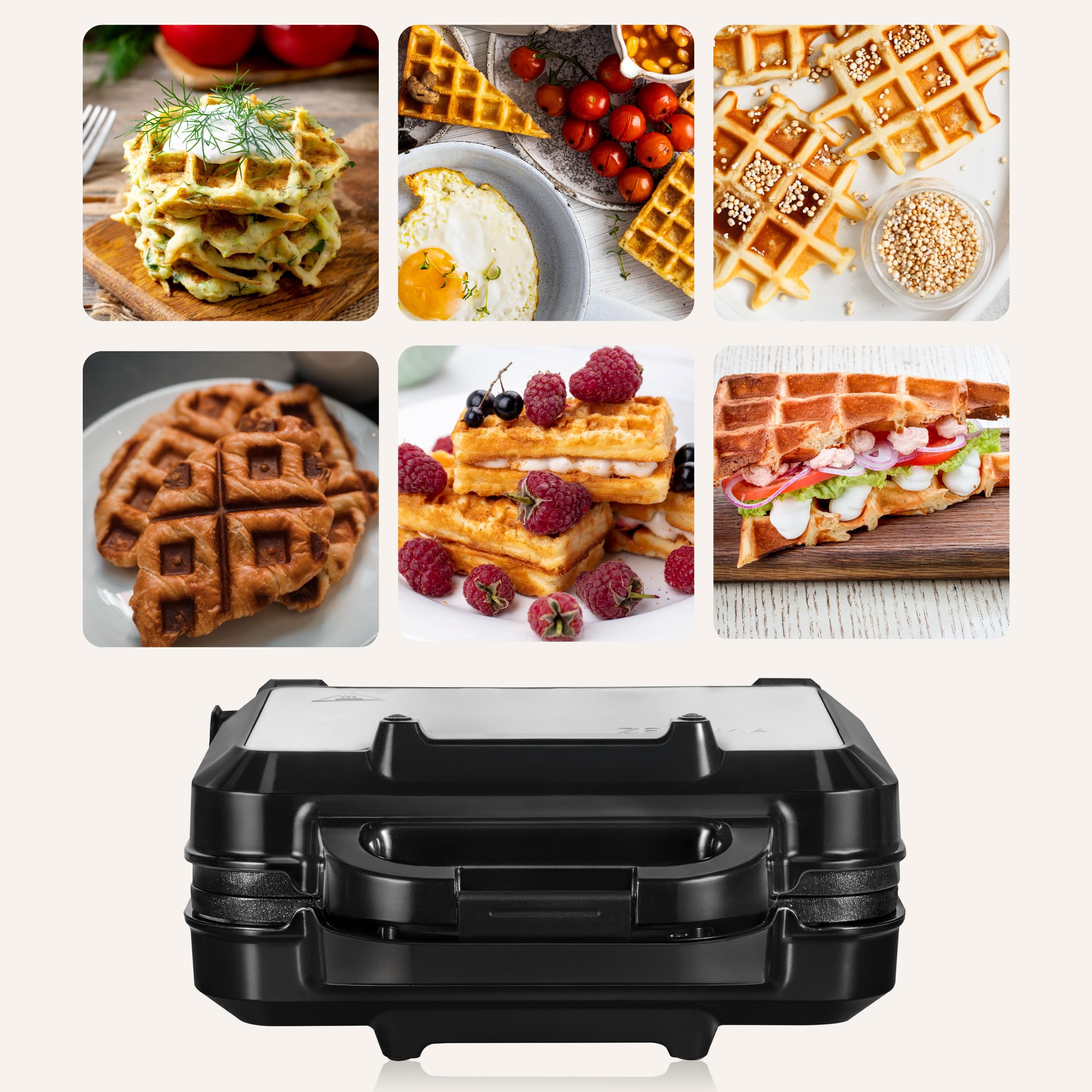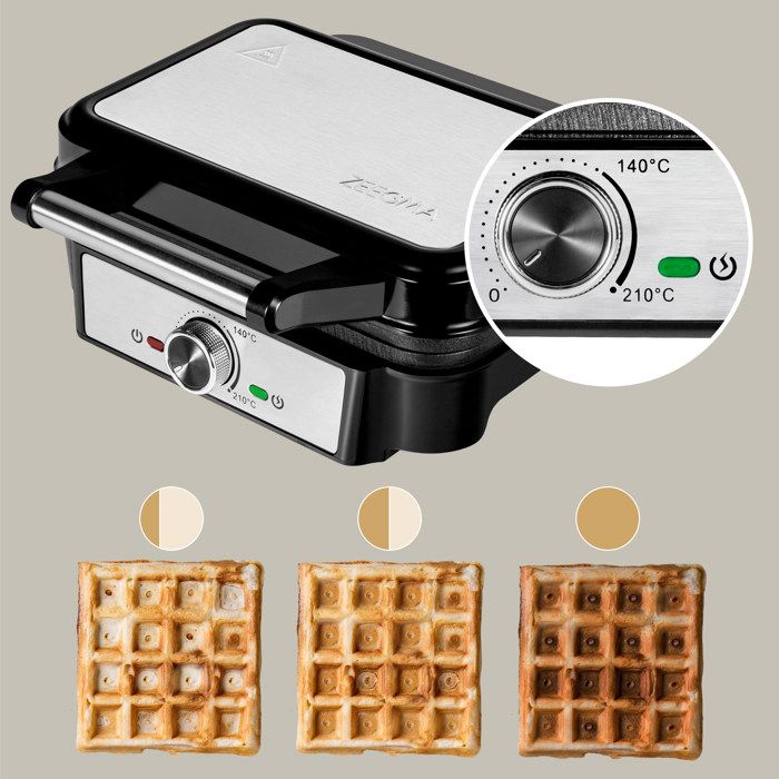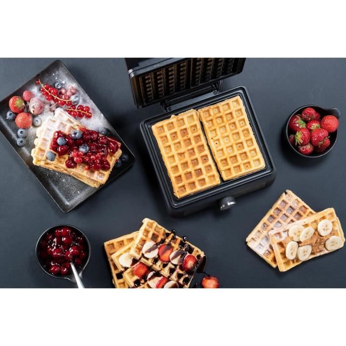 GOURMETmaxx Gaufrier pour 2 gaufres belges | Gaufrier automatique avec PLAQUES ANTIADHÉSIVES ET PROFONDES: Le revêtement spécial empêche la pâte de coller, ce qui vous permet de cuire sans excès de graisse et de retirer facilement les gaufres finies. Gaufrier Plaques Antiadhésives Profondes Gaufrier - ZEEGMA - Gofree Chef Pro - 1200 W - Rotatif 180° - Revêtement Anti-adhésif - Electroménager Machines Et Appareils La machine à gauffre est idéale pour l'usage domestique et la cuisson intensive. Senya Gaufrier appareil à croque monsieur réversible pour 4 gaufres ou... Gaufrier double GED 20 - Gaufres belges de Liège 4x6 carrés - Plaques... VOYANTS LUMINEUX: Un témoin lumineux vous indique que l'appareil à gauffre est en train de chauffer et un témoin de disponibilité indique que le gaufrier électrique a atteint la bonne température. Les grilles profondes permettent de cuire des gaufres épaisses et moelleuses, comme les gaufres belges. BOÎTIER ISOLÉ THERMIQUEMENT: Le boîtier à isolation thermique minimise le risque de brûlure, garantissant ainsi une plus grande sécurité d'utilisation de l'appareil à gaufre. GAUFRIER PUISSANT DE 1200 WATTS: Le gaufrier double de 1200 W assure une chauffe rapide et une cuisson uniforme pour des gaufres parfaitement cuites. RÉGLAGE DE LA TEMPÉRATURE: La possibilité de régler la température à l'infini vous permet de cuire les gaufres selon vos préférences, qu'elles soient délicatement dorées ou très croustillantes. Des gaufres croustillantes à la maison 🧇 Avec le gaufrier Zeegma Gofree Chef, préparez des gaufres dorées et savoureuses en quelques minutes – parfait pour le petit-déjeuner, le goûter ou un dessert gourmand.