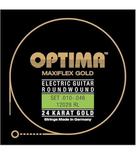 Optima Electric Maxiflex Gold 12028RL regular light | guitare électrique Electric Guitar Optima 12028 EL Gold ElectricMaxiflex – France BM Signature Certainement les cordes les plus prestigieuses du monde. Outre Ovation, GEWA Guitars acquiert en 2021 la marque Manuel Rodriguez Guitarras, dont les instruments sont développés en étroite collaboration entre Manuel Rodriguez III et l'équipe de développement d’Adorf, et fabriqués en Europe Optima cordes de guitare électrique Gold Strings., Maxiflex E6 ., 046w GEM046 Cordes de guitare électrique - Optima Chrome 7 cordes 9-54 | Optima... Plus flexible que les Gold Strings normaux, fabriqué en Allemagne qualité premium pour les plus hautes exigences sonores, revêtement en or 24 carats, totalement insensible au ternissement ou à la corrosion