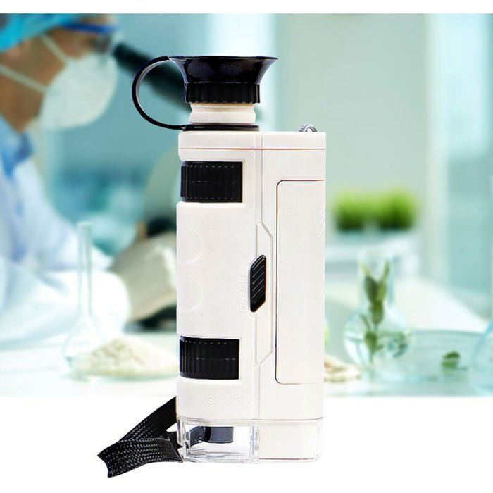 MicroMini microscope de poche très puissant, grossissement 20x, avec Batterie : AG13 1 , 5 V 120 mAh x 2 (intégré) ., Contenu : 1 microscope ., 1 base ., 4 échantillons ., Remarque : 1 . Prise en for charge de plusieurs modes... Petiscope Enfant Goliton Mini Microscope De Poche 60x Loupe De Poche Portable Bijoutier LED Lampe Loupe-argenté Le Petiscope NKBSDKM Couleur: BlancMatériau: ABSContenu de l'emballage:1 * Ensemble de microscope optiqueSeul le paquet ci-dessus, les autres produits ne sont pas inclus. Cultivez l'intérêt des enfants pour l'exploration, profitez du micro-monde et augmentez l'intérêt et les connaissances des enfants pour la science. Microscope Portable Enfants, Mini Microscope de Poche avec Lumière LED, Microscope HD Cadeau Enfants, étude à Domicile Préscolaire ... -25€ dès... L'erreur de mesure permis est de +/- 1-3 cm. Plusieurs multiples peuvent être commutés, 60X-120X, pour répondre aux besoins des étudiants. Peut être connecté à un téléphone portable. La source de lumière LED peut être allumée si la lumière est insuffisante et la source de lumière peut être ajustée à l'aide d'une source de lumière LED.
