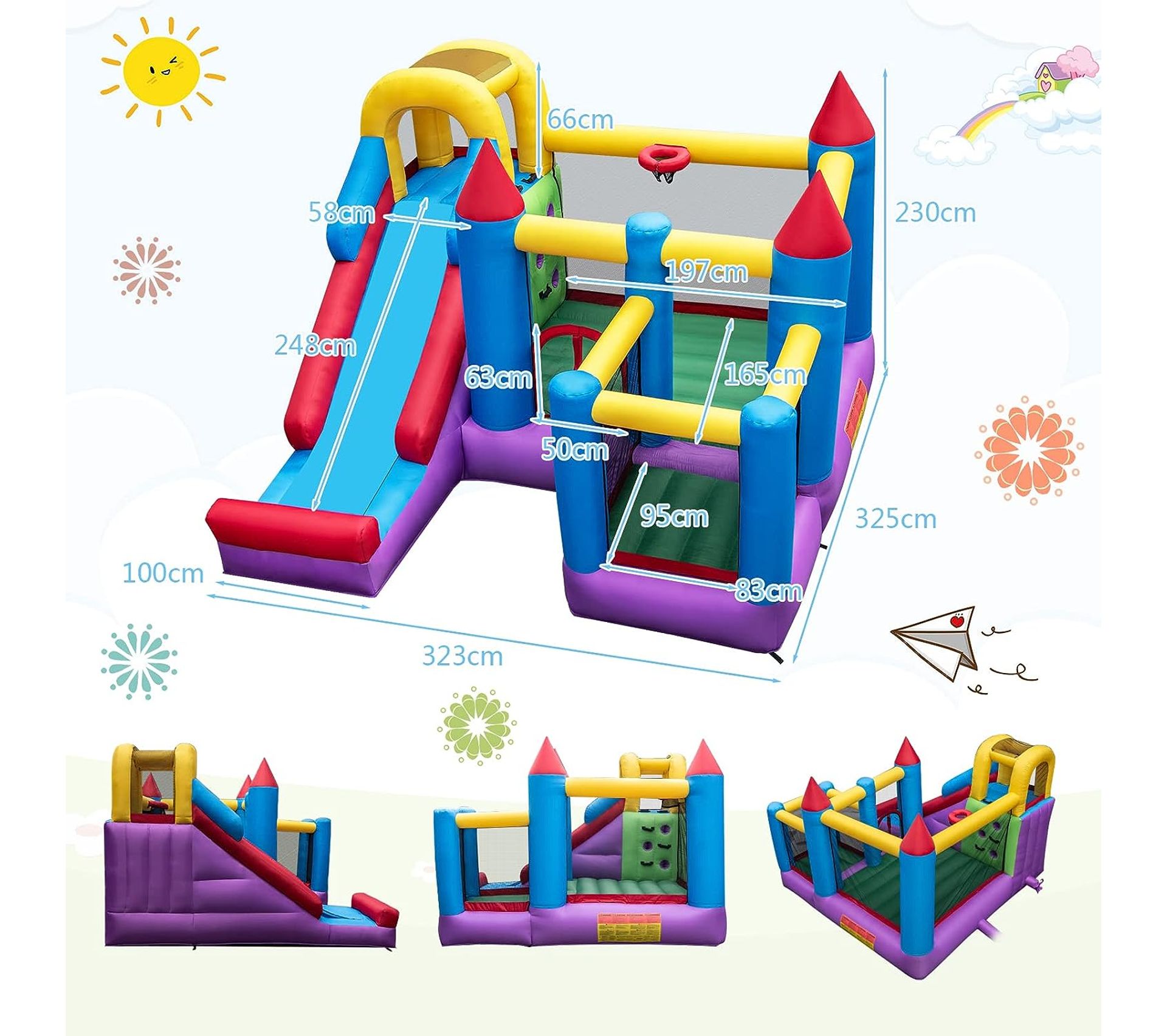 Maison Gabby Chat Aire De Jeux Exterieur Enfant Château Gonflable SportBob Avec Double Toboggan - Aire De Jeux Géante Pour Enfants - Piscine Et Activités Ludiques - Jardin, Extérieur Et Intérieur Toboggan Enfant Aire De Jeux Gonflable Avec Piscine SportBob Château Gonflable pour Enfants Extérieur Intérieur avec Soufflerie, Toboggan, Piscine à Balles, Saut, Terrain de Football et Panier de Basket, Adapté aux Enfants de 3 à 8 Ans, 385×258×220 cm Château Gonflable Pour Enfants - Double Toboggan Double Piscine, 460x343x190 Cm - Aire de jeux... Avec piscine d'éclaboussures, lancer d'anneaux, canon à eau, mur d'escalade, panier de basket et zone de tir, nos châteaux offrent un divertissement complet pour tous les enfants ! [Sécurité et Assurance Qualité] Fabriqué en tissu Oxford enduit de PVC de qualité supérieure, notre château gonflable avec souffleur garantit durabilité et résistance à l'usure. La sécurité est notre priorité absolue, avec des coutures renforcées, des filets en mesh et des mains courantes adaptées à la hauteur assurant un environnement sécurisé pour que vos enfants profitent de leurs aventures aquatiques sans fin. [Divertissement Illimité] Nos chateau gonflable d'eau proposent deux toboggans de hauteurs différentes. Lorsqu'il n'est pas utilisé, il peut être dégonflé rapidement pour un rangement compact dans les sacs de transport inclus. [Avantages de Développement et Sans Écran] Au-delà du divertissement, nos structures gonflables jeux exterieur enfant favorisent le développement de compétences essentielles. [Polyvalent pour Toutes les Occasions] Que ce soit pour une fête d'anniversaire ou une réunion décontractée, nos aire de jeux gonflables sont adaptées à diverses occasions. Matériau durable et de sécurité : notre maison gonflable avec toboggan d'eau est fabriquée en tissu de nylon Oxford 840D et 420D de haute qualité, ce qui garantit une durabilité exceptionnelle et une résistance à la déchirure et aux perforations