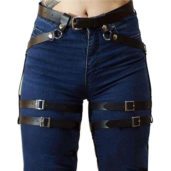 FWXESDAOU Harnais en Cuir pour Femmes Porte-Jarretelles Ajustable Ceintures De Cuisses pour Soirée Punk Bijoux De Corps en Chaîne Il peut être porté seul ou associé à d'autres accessoires pour créer un look unique. Accessoire Gothique Fête Anneaux De Jambe Gothiques En Cuir PU, Ceinture De Harnais De Harnais Jambe Cuir Pu Les anneaux de jambe ajoutent une touche de mode au design général, ce qui rend la ligne de jambe plus fine. Parcourez notre sélection de ceinture jambe chaîne : vous y trouverez les meilleures pièces uniques ou personnalisées de nos boutiques YOYIAG Sac Jabe Cuir Fee: Sac D'équitation Sac Jabe ultifonction... Veuillez prévoir de légères différences de couleur en raison des différentes résolutions d'affichage. Tour de taille : environ 96 x 1,6 cm. Contenu : 1 harnais 2 en 1 pour la taille. Design unique : les poignets de jambe peuvent être ajustés librement pour l'étanchéité, adaptés aux jambes de différentes épaisseurs, augmentant le confort et la flexibilité de port. Remarque : Les mesures étant prises à la main, les tailles indiquées peuvent varier de 1 à 2 cm. Caractéristiques : Charme unique : il combine différents types tels que le punk, mettant en valeur un charme de personnalité unique.