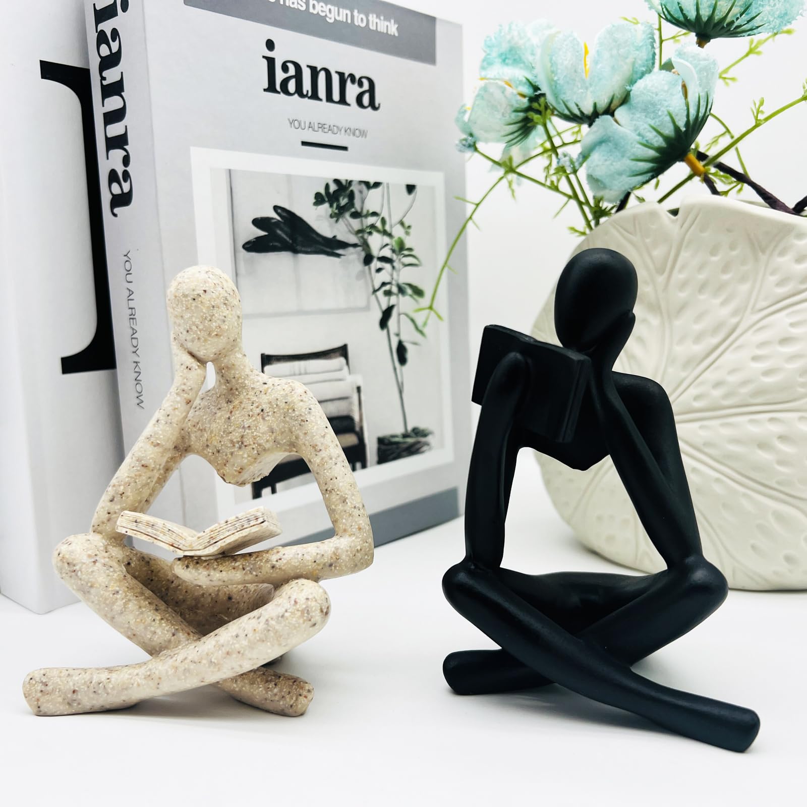 STATUETTE,Figurines-A--Figurines modernes de noël pour décoration Taille : taille de la figurine de lecture : 8,1 cm de large, 11,9 cm de haut. Sculpture Esthétique Contemporaine Lot De 2 Statues Penseur En Grès Et Résine, Décoration Intérieure Statues Décoratives Élégant et généreux, léger et élégant. Statue De Penseur En Résine Sculpture Abstraite Petit Ornement... Ornement - TMISHION - Statue de Penseur en Résine - Design Abstrait... Facile à utiliser : la décoration de lecture moderne n'est pas seulement un ornement, c'est votre âme sœur. Cette sculpture de penseur abstraite est pour votre famille, amoureux, amis, enfants., Cadeau parfait. Cette figurine de penseur en résine peut facilement décorer votre salon, chambre, couloir, bureau, etc. Matériau : la statue de lecture est une belle petite décoration en grès, les accents décoratifs en grès sont fabriqués en résine, la surface est claire et lisse, lignes simples et lisses, facile à nettoyer. Convient pour toutes les occasions, telles que Noël, Pâques, Thanksgiving, fête, anniversaire, remise de diplôme, mariage, Nouvel An, Saint-Valentin. Caractéristiques : cette figurine de penseur en grès est conçue avec un superbe savoir-faire, une figurine de penseur simple mais artistique qui ajoute une touche élégante et généreuse à votre salle et peut attirer l'attention des amis ou des clients.