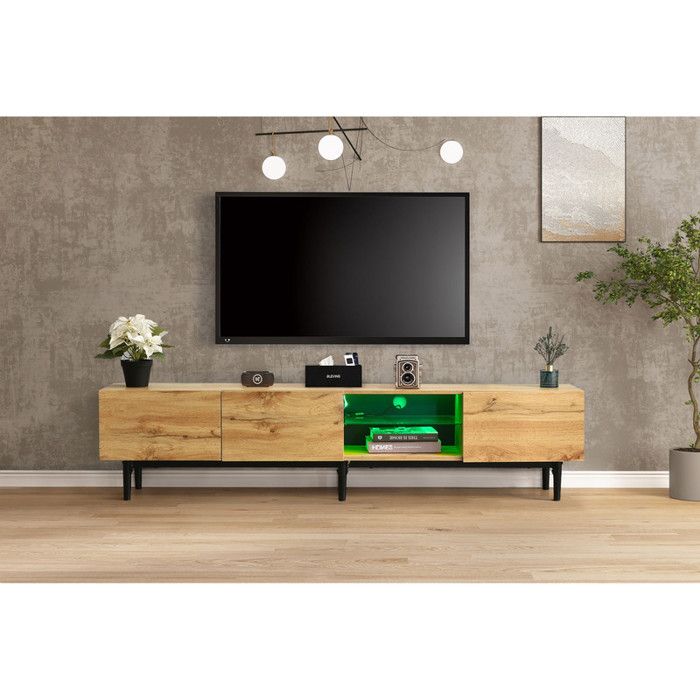 Portes Battantes Rangement Fortuna Lai Meuble TV Bas Avec Grain De Bois, 2 Tiroirs, 2 Portes Et 2 Meuble MDF Pieds Acier 50kg Charge Elégant meuble TV - design moderne avec fonction Push-to-Open. D : L : 135 cm, H : 30 cm, P : 32 Elégant meuble TV - design moderne avec fonction Push-to-Open. D : L : 135 cm, H : 30 cm, P : 32... Service : si vous rencontrez des problèmes, veuillez contacter NIUAWASA Service client : Caractéristiques : Dimensions totales (L x l x H) : 175 x 31 x 41 cm. Matériau : panneaux MDF Matériau du pied : tube en acier de 32 x 0,8 mm de diamètre Le matériau utilise du MDF de haute qualité, solide et fiable, et le panneau peut supporter un poids de 50 kg. Fonction : 1., design de couleur, la combinaison parfaite de couleur bois naturel et de noir, créant un style simple un autre sens de la mode., 2., Facile à assembler, avec des instructions détaillées (français non garanti) et les accessoires fournis, le montage de ce téléviseur est armoire un jeu d'enfant., 3., 7 types de lumières LED pour créer une atmosphère énergique et enchanteresse qui Réunion télé avec excitation et divertissement., 4., Différentes fonctions, le meuble TV dispose d'une étagère ouverte et de 3 armoires de rangement qui beaucoup d'espace de rangement., 5., Protection spéciale à l'intérieur de l'emballage, protégez le meuble TV pendant le transport Blessures. La porte battante avec dispositif de rebond pour portes d'armoire offre plus de confort lors de l'ouverture de l'armoire. Ce produit est livré avec trois armoires et dispose d'un grand espace de rangement pour faciliter le rangement des objets. Dimensions (L x l x H) : 175 x 31 x 41 cm, facile à assembler (deux personnes sont recommandées), car il a des pièces marquées et des instructions claires (français non garanti). Meubles TV Tendance pas cher