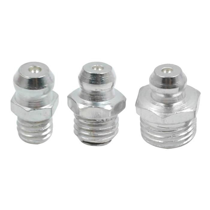 Pour la remise en état et le remplacement des graisseurs manquants ou cassés sur vos machines. Bouchon Graisseur Fer Zingué Graisseur X AUTOHAUX M6 X 1 Coudé 90° Raccord Graisseur Nickelé Embout Embout Graisseur Description :M6 M8 M10 les raccords filetés à graisseur. HP542408 Graisseur coudé M10 MBB MBB-1284493 adapté à la plupart des moto,automobile,camion,et les applications industrielles. Remarque : Veuillez vérifier la taille et assurez-vous que c'est la bonne pièce pour votre unité. Graisseur de pompe X AUTOHAUX Droit M8x1 Raccord Nipple Graisseur... Une bille à ressort empêche l'entrée de la saleté. Conception à angle de 90 degrés. Emballage inclus:1 x M6 bouchon graisseur1 x M8 bouchon graisseur1 x M10 bouchon graisseur Raccord graisseur zerk 1/4-28 zinc pour Flexiride Le filetage est profond, le pas du filetage est plus robuste, il ne glisse pas en rotation. Des matériaux de haute qualité et de construction pour une longue durée de vie.