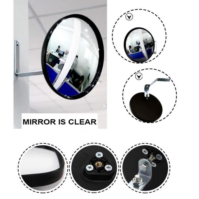 La surface hautement réfléchissante offre une excellente visibilité même dans des conditions de faible luminosité, contribuant ainsi à une meilleure sécurité routière. Contenu de l'emballage : 1 miroir de signalisation. Miroir Convexe 30 Cm Grand Angle Miroir De Circulation Grand Angle - Mothinessto - Miroir De Circulation Miroir Convexe 30cm Grand Angle Panneau Routier Miroir Parmi Les Roseaux, Miroirs Convexes Extérieurs... Sûr et durable : le miroir de circulation est fabriqué à partir de matériaux robustes de haute qualité, qui sont à la fois résistants aux intempéries et aux chocs. La surface du miroir est fabriquée en PC et résiste aux intempéries, ce qui garantit la durabilité du miroir panoramique. Dimensions : 30 x 30 x 8 cm Poids : 650 g. Se fixe facilement sur un mur, un mât ou toute autre surface appropriée, ce qui vous permet d'améliorer votre visibilité rapidement et facilement. Cela garantit une longue durée de vie et une sécurité fiable, qu'il soit utilisé à l'extérieur ou à l'intérieur. Le cadre est fabriqué en plastique ABS, résistant aux UV, au vieillissement et durable. Que ce soit dans les garages, les allées ou les entrepôts, ce miroir vous permet de détecter les obstacles à un stade précoce et d'éviter les accidents, ce qui contribue à un environnement de travail globalement plus sûr. Spécification : Matériau : PC + ABS Couleur : noir. Miroir de sécurité convexe, miroir de circulation extérieur, objectif... Idéal pour les zones très fréquentées telles que les allées et les entrepôts. Facile à installer : ce miroir de circulation est facile à assembler et est livré avec tout le matériel de montage nécessaire. Sur le miroir de circulation se trouve un film transparent pour éviter de rayer la surface du miroir lors de l'installation. Miroir de circulation grand angle, 30 cm -11.8 pouces Miroir de